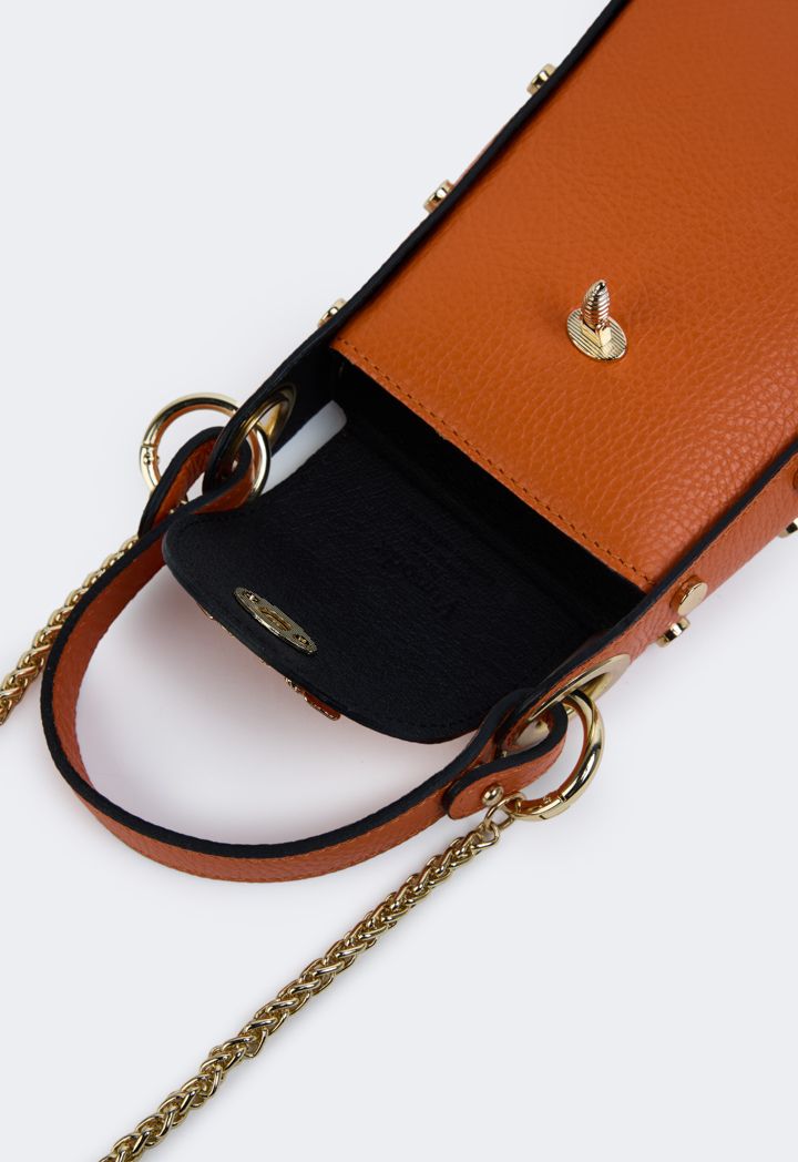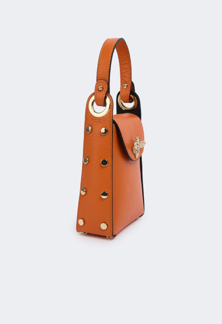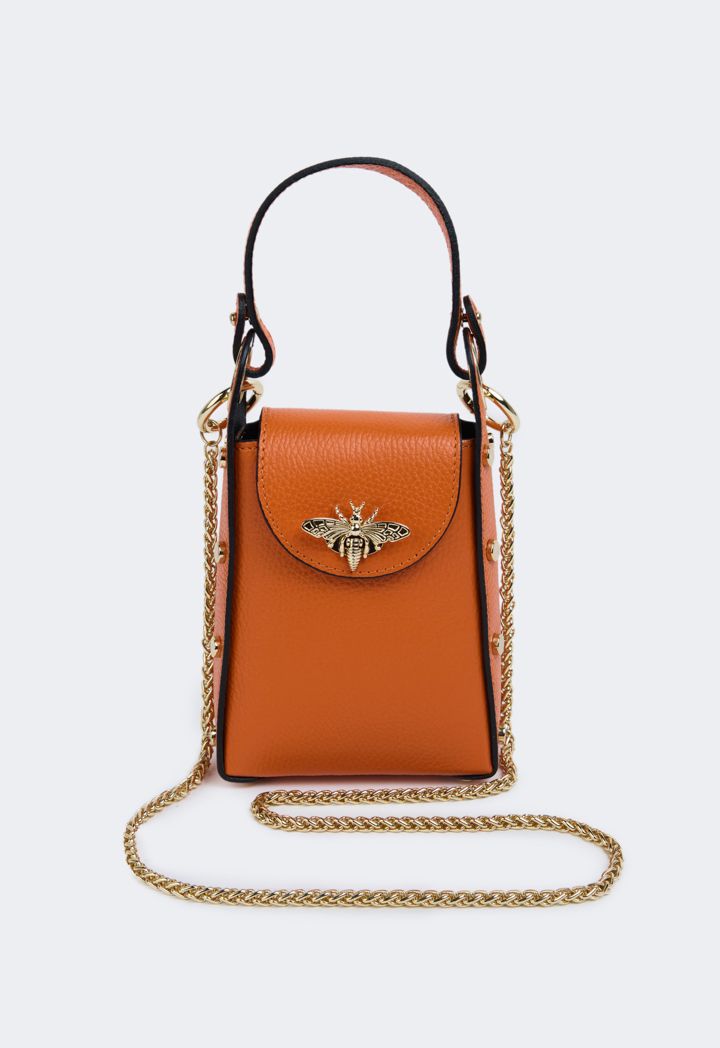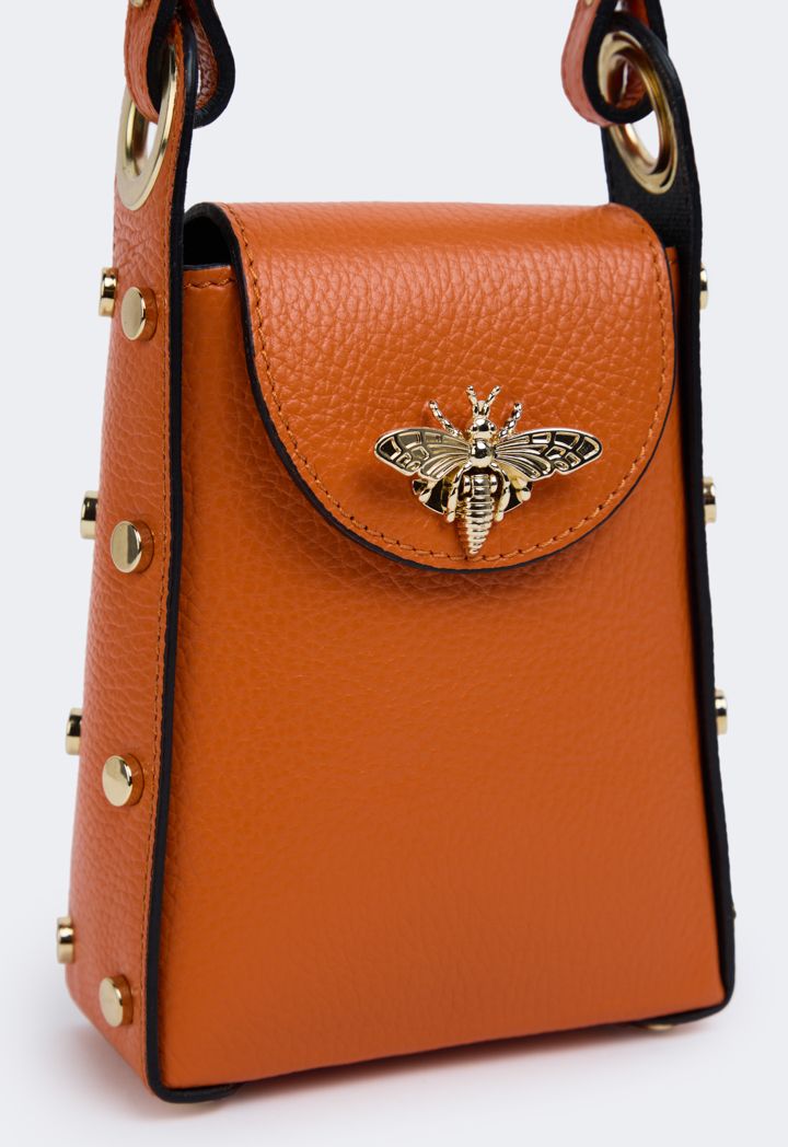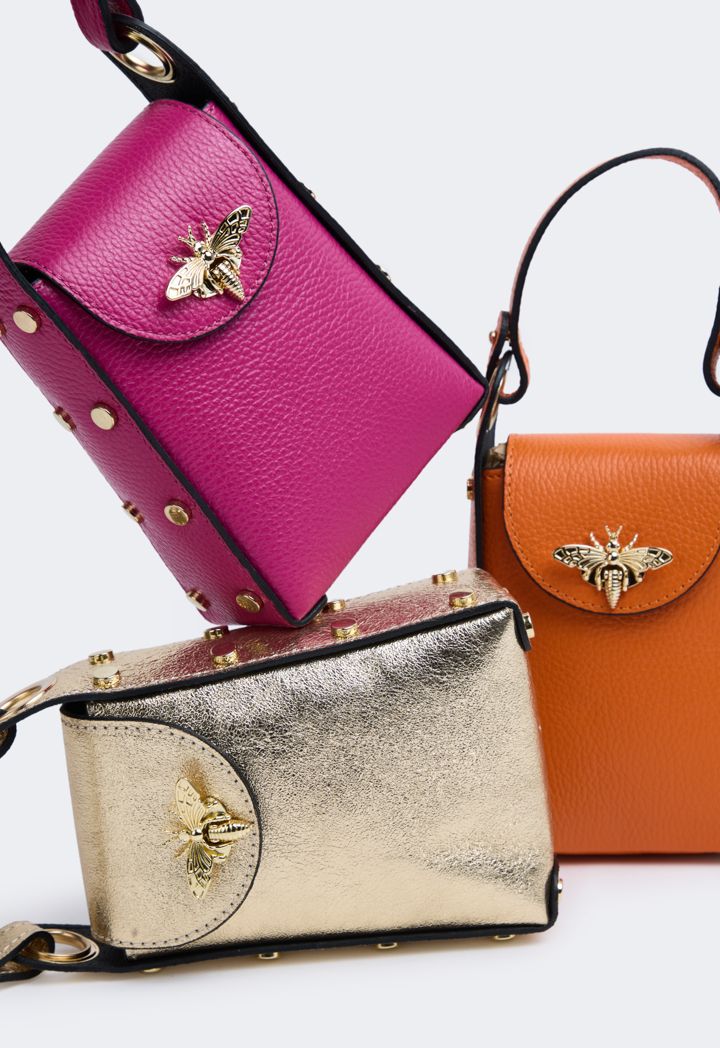 An alluring butterfly embellished genuine leather crossbody bag that is sure to be your new favorite. MADE IN ITALY