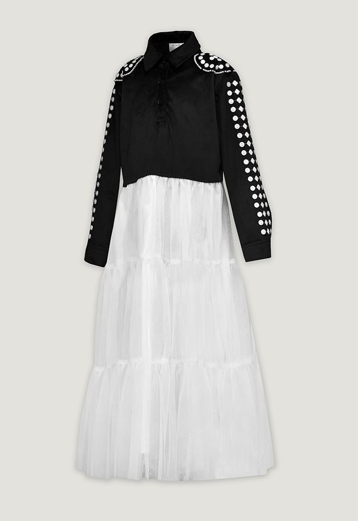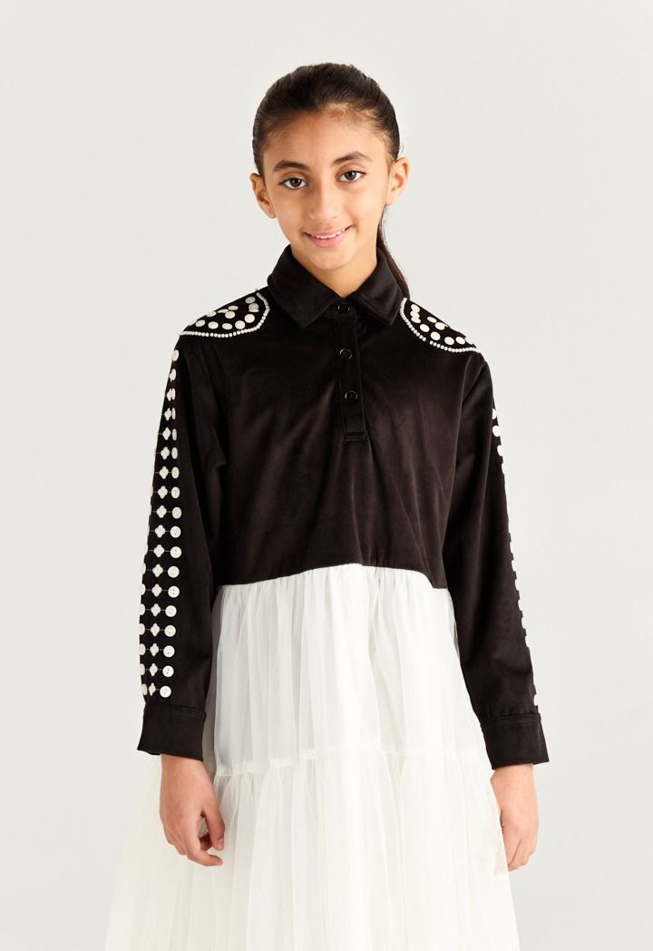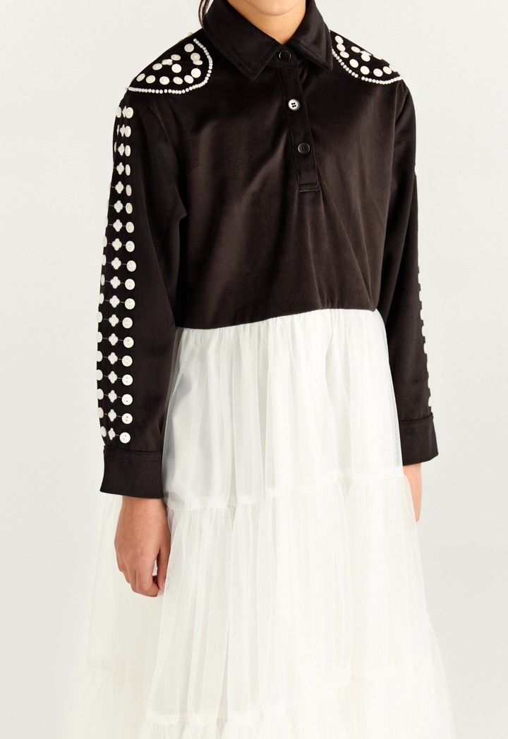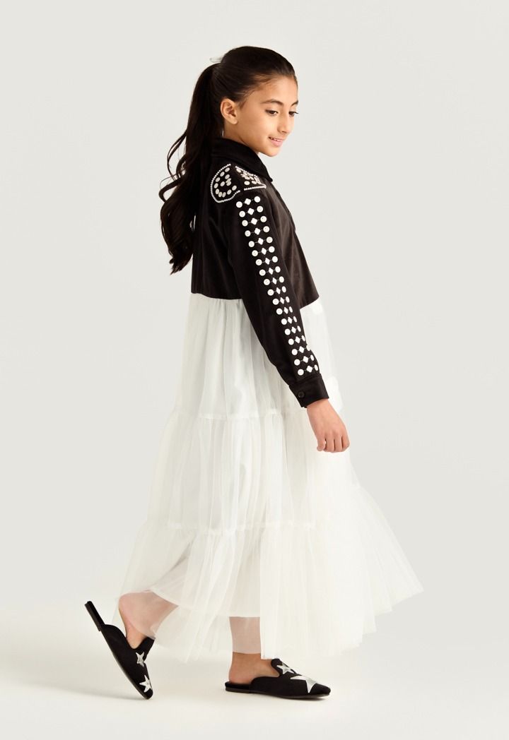 Opulent velvet meets dreamy tulle layers- timeless allure for your little girl enchanting evenings.