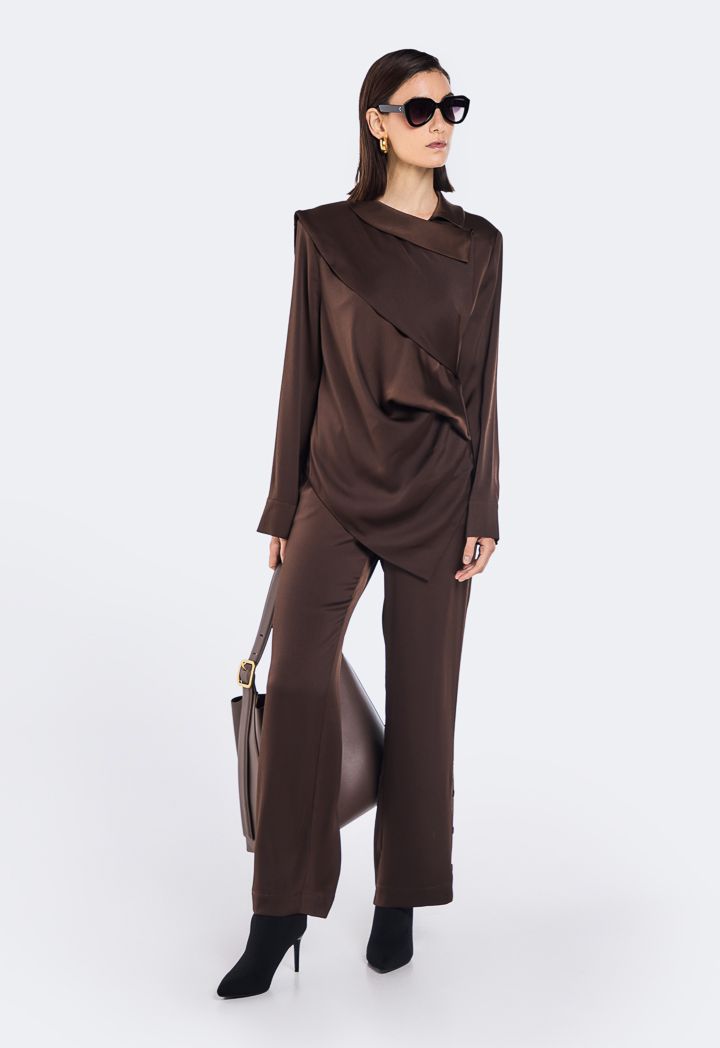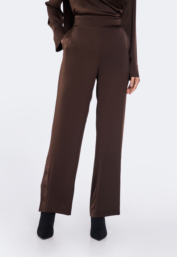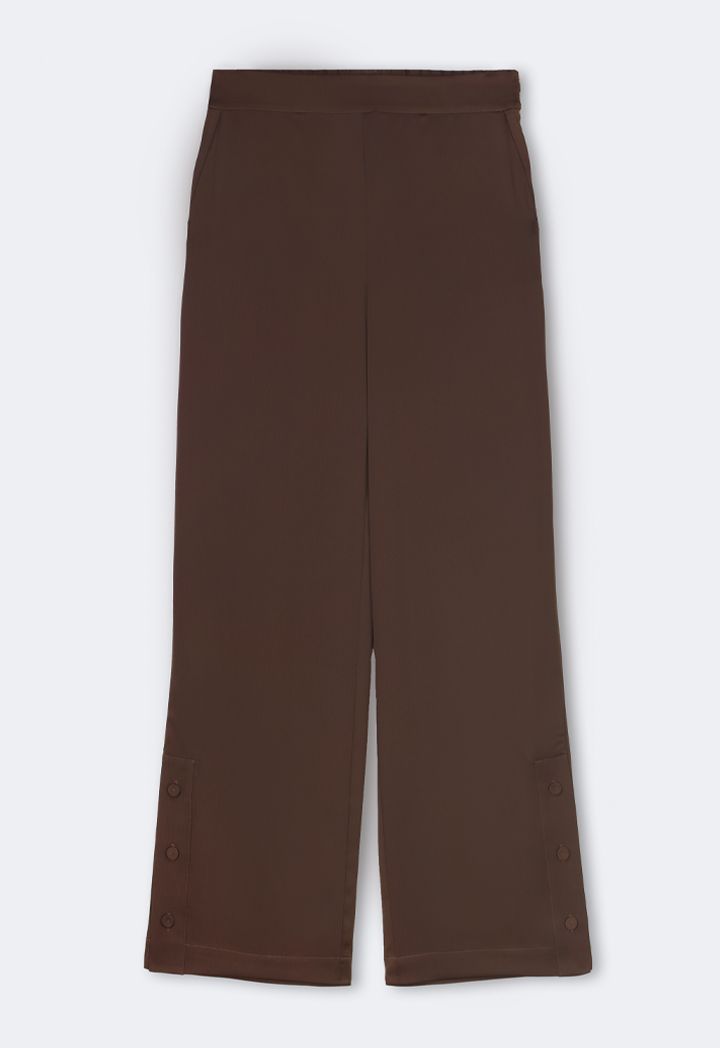 A solid pair of trousers made with a comfortable design and embellished with buttons.