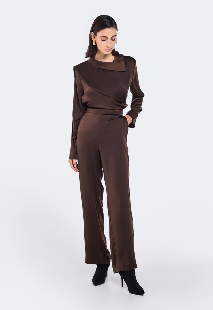 Design : Solid, Button Embellished, Straight Cut, High Waist, Side Pockets