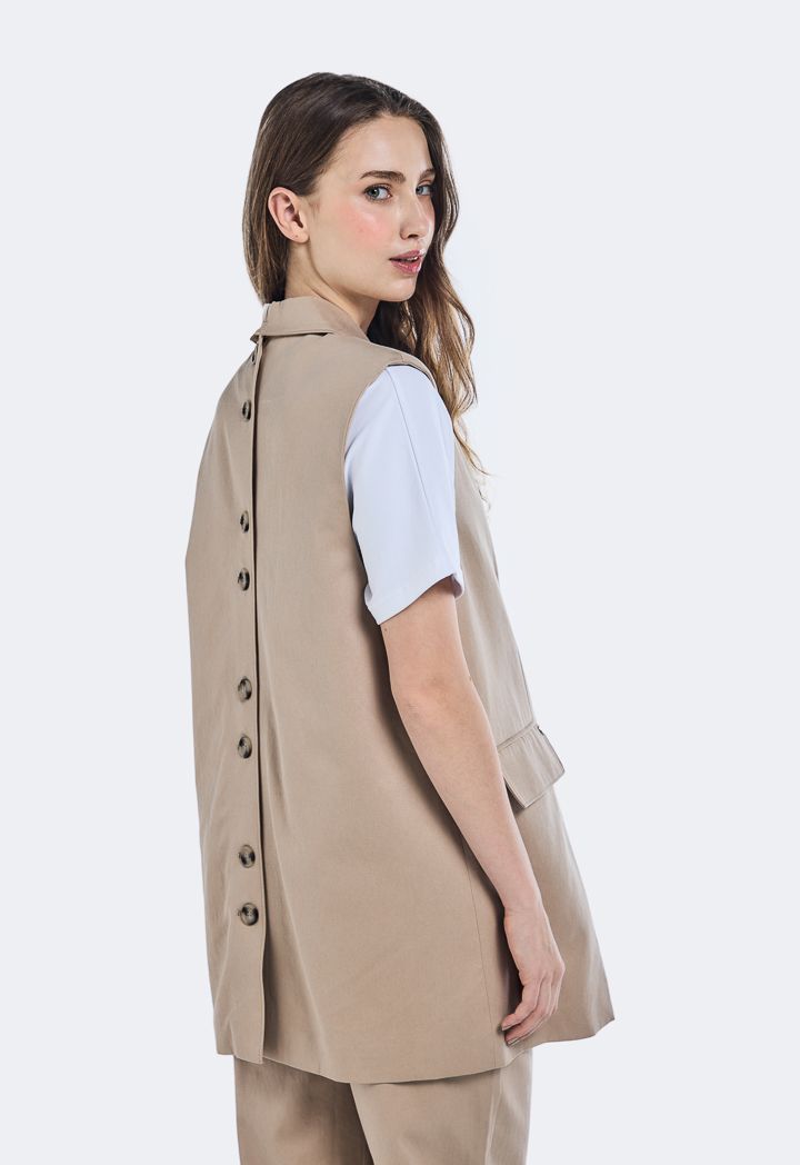 Buttoned Embellished Flap Pockets Vest |