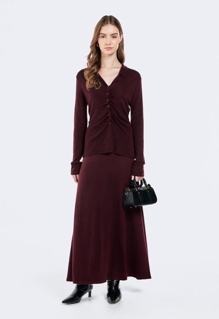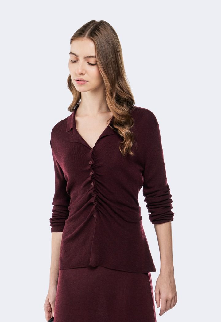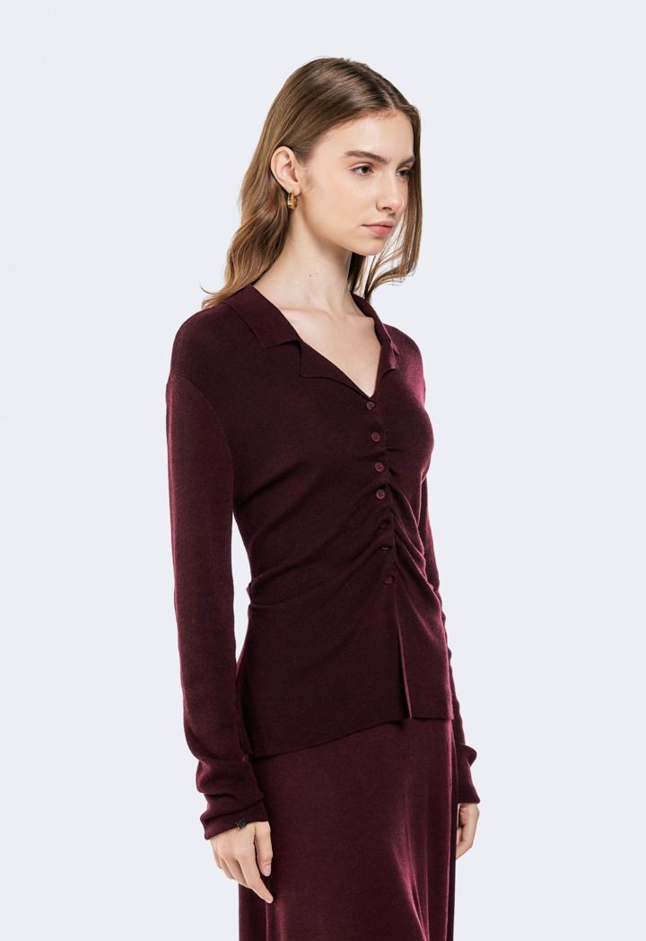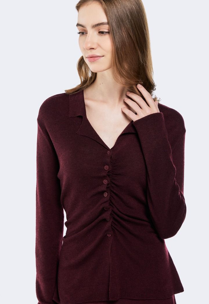 Buttoned Sweater With Gathered Front |