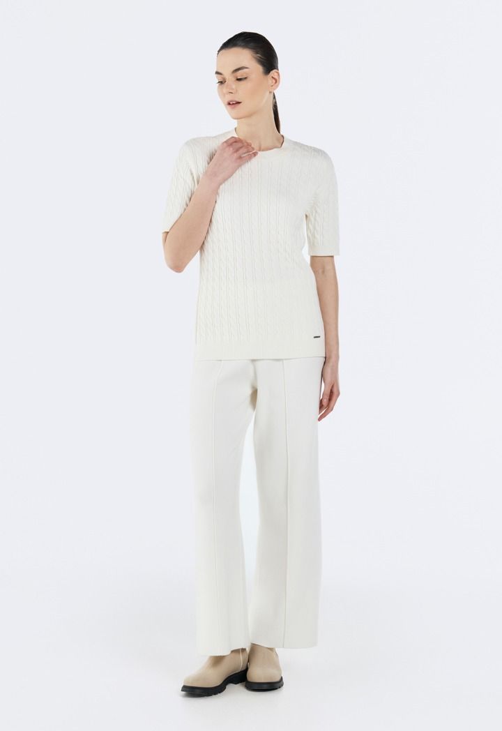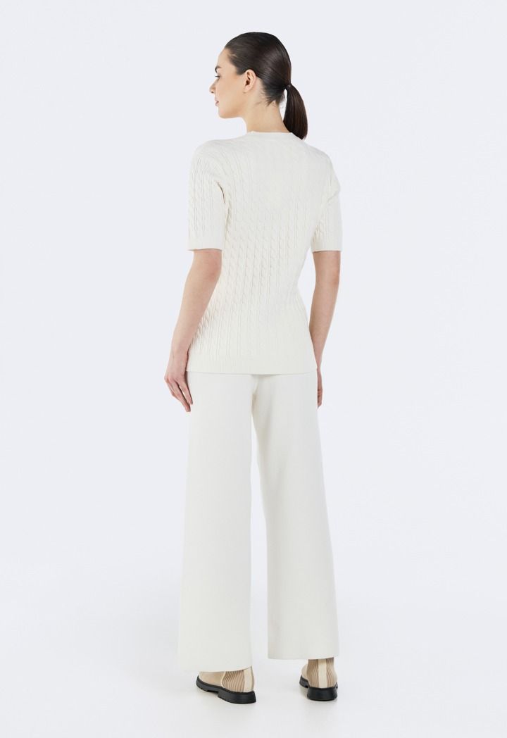 This stylish cable-knit blouse is timeless and cozy for your daily outfits.