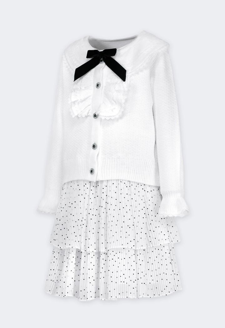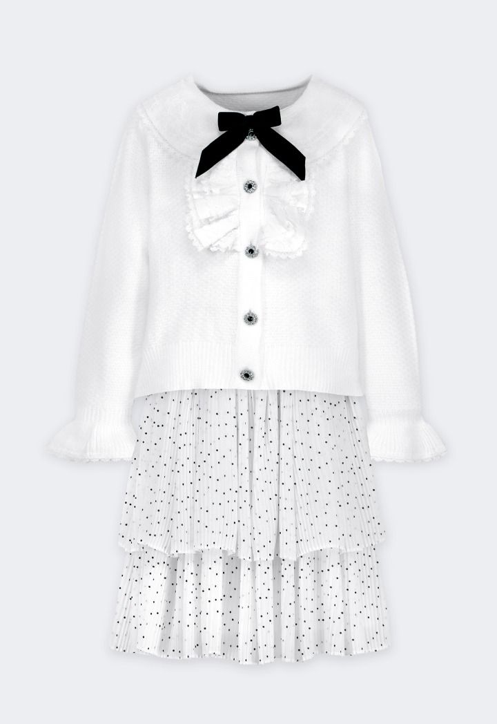 Cardigan and Polka Dot Skirt Set (2PCS) |