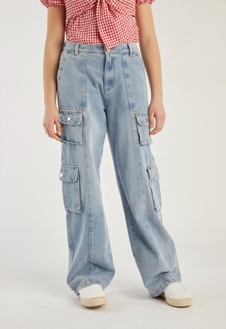 A casual pair of cargo jeans that is sure to add a touch of cuteness to your looks.