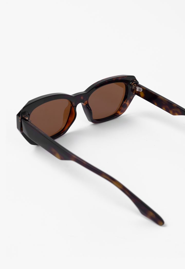 A pair of sunglasses that feature a cat eye frame and a design that is sure to be your new favorite.