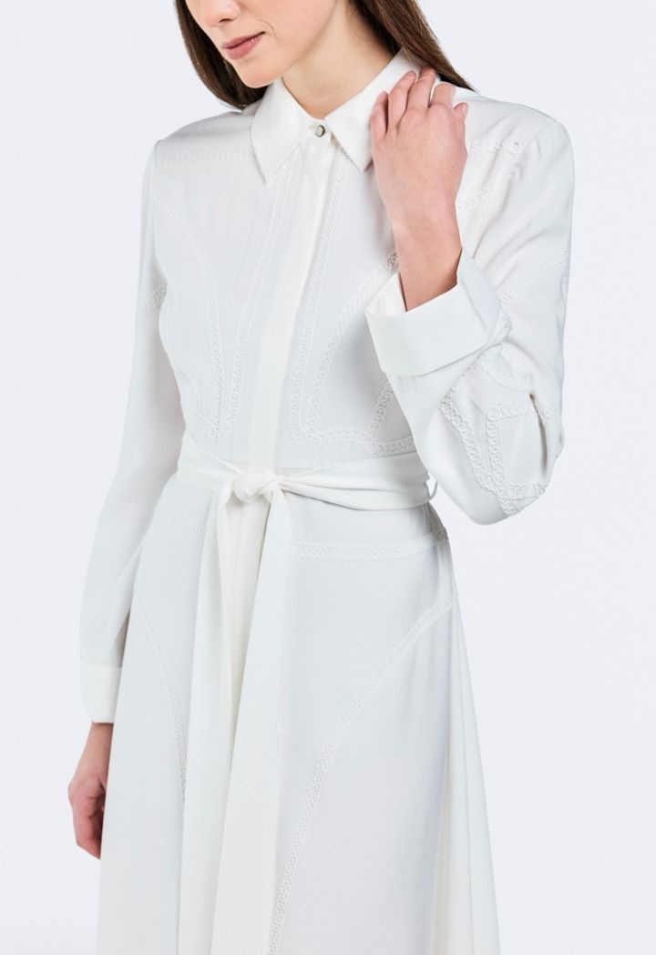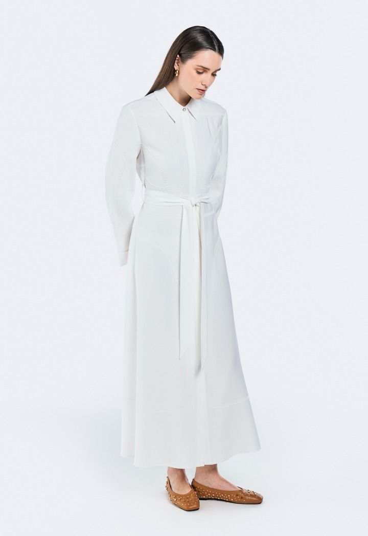 Chain-Embroidered Belted Dress |