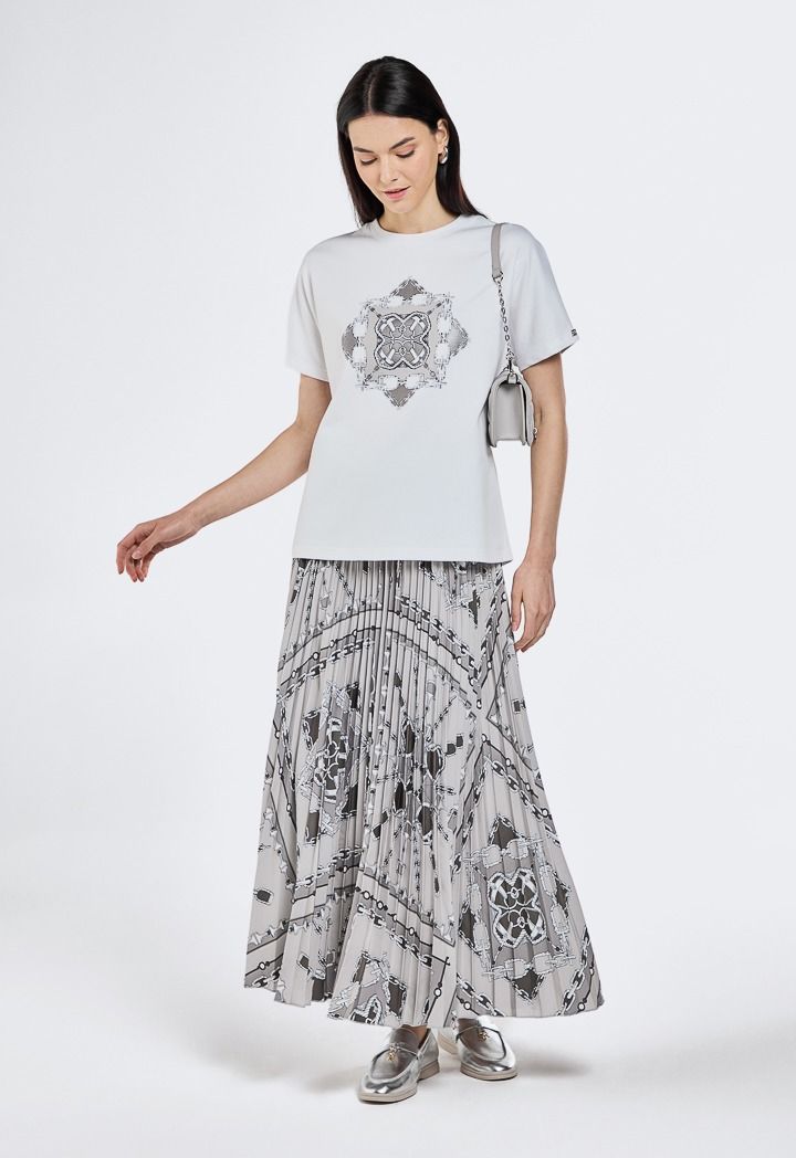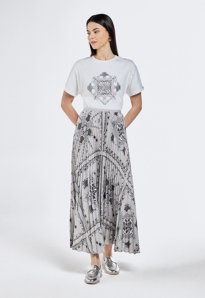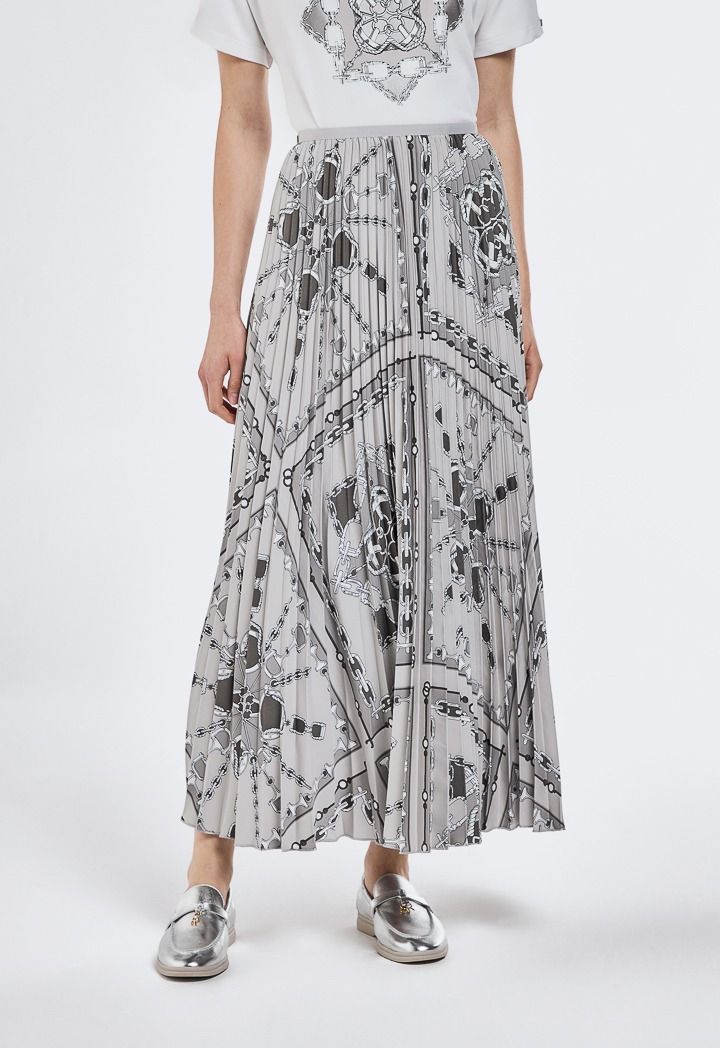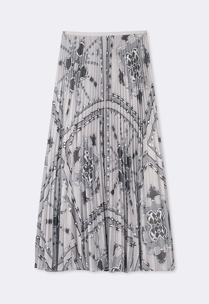 Add a touch of luxury to your everyday style with our chain print pleated skirt, flowing elegance meets statement design in every step you take.