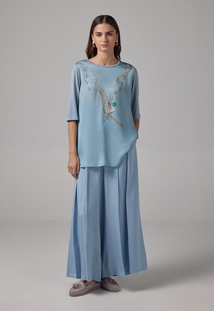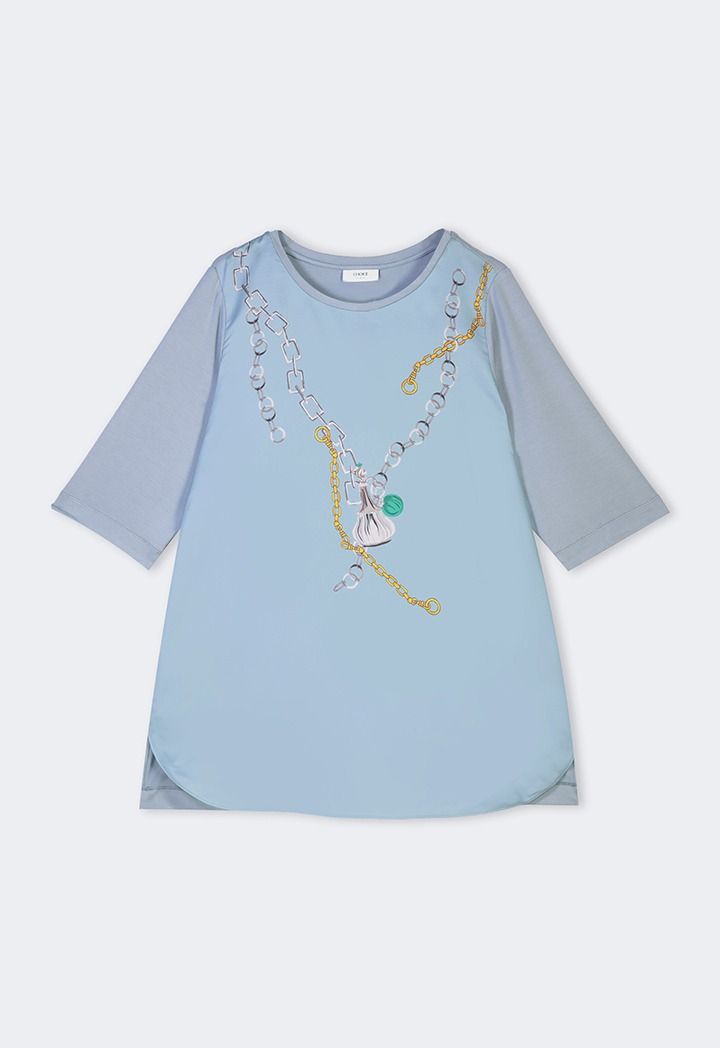 Design: Chain Print, Side Slit At Hem, Strass