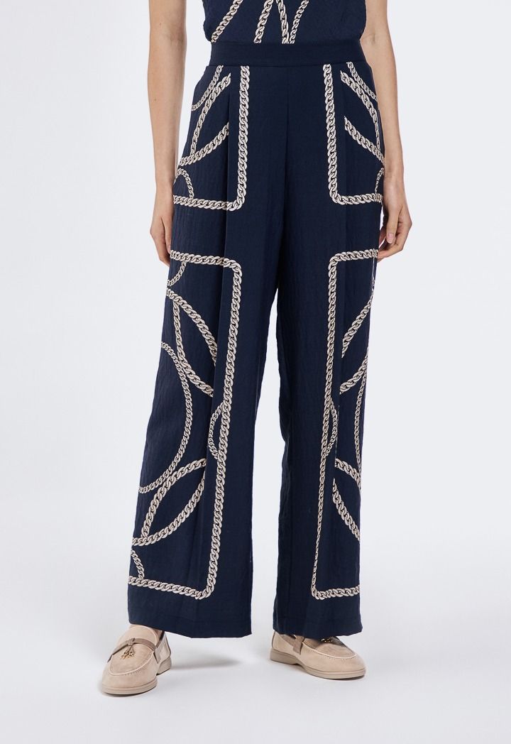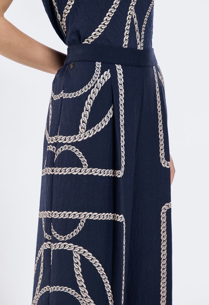 Design: Chain Print, High-Waist, Front Pleats, Crinkled