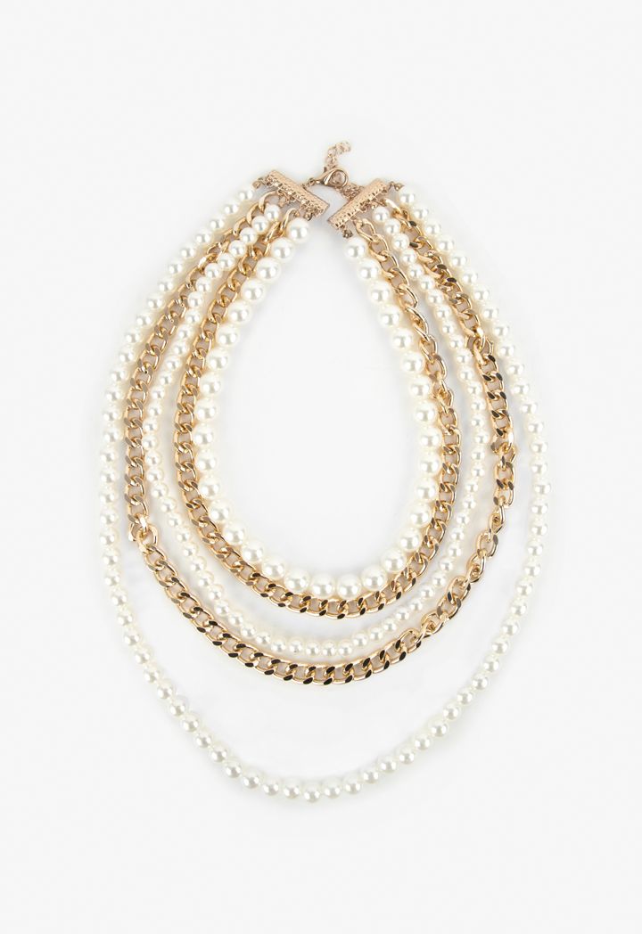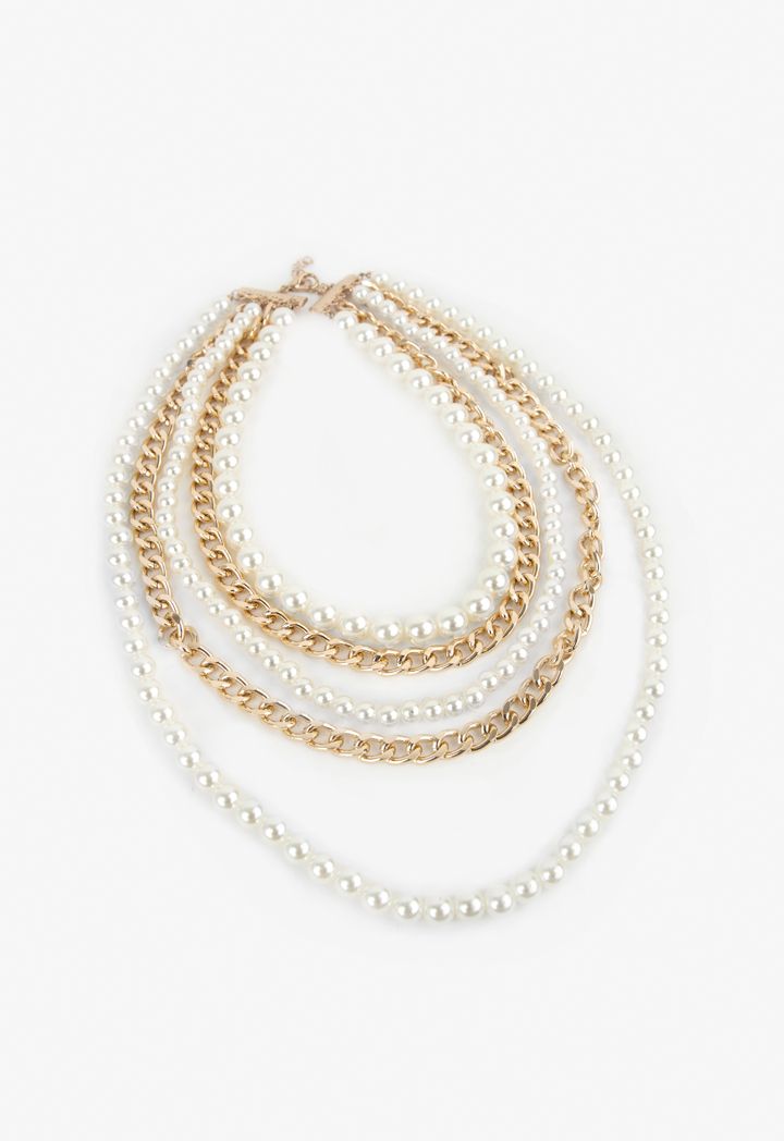 Chains and Faux Pearls Necklace |