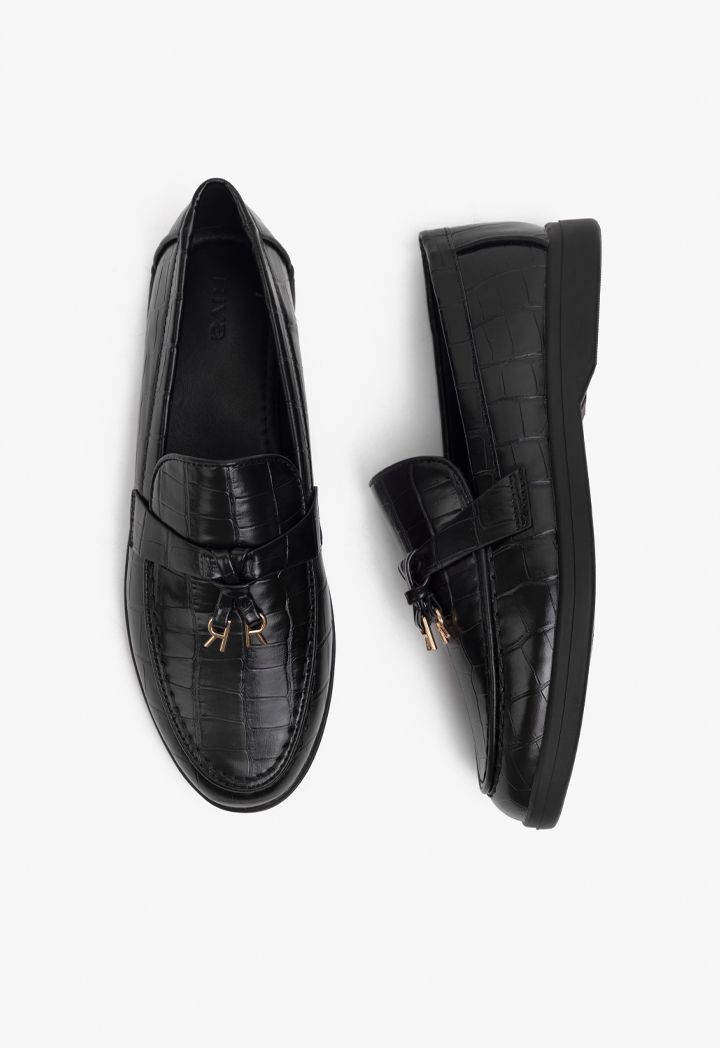 Charms Embellished Textured Loafers |