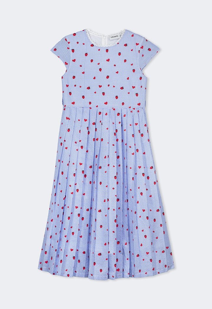 Enjoy a unique look with a wrinkled dress featuring a checkered design, distinctive print, and a pleated skirt, combining elegance and comfort in every detail