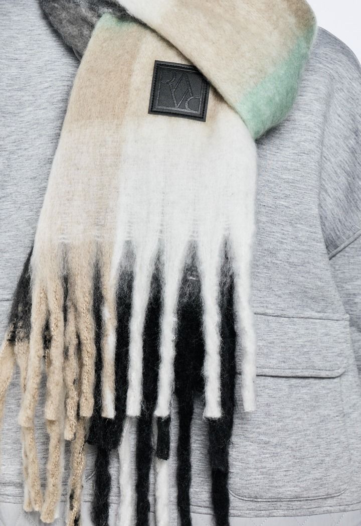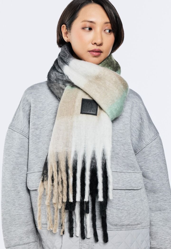 Design : Checkered, Wool, PU Leather Emblem, Tassels