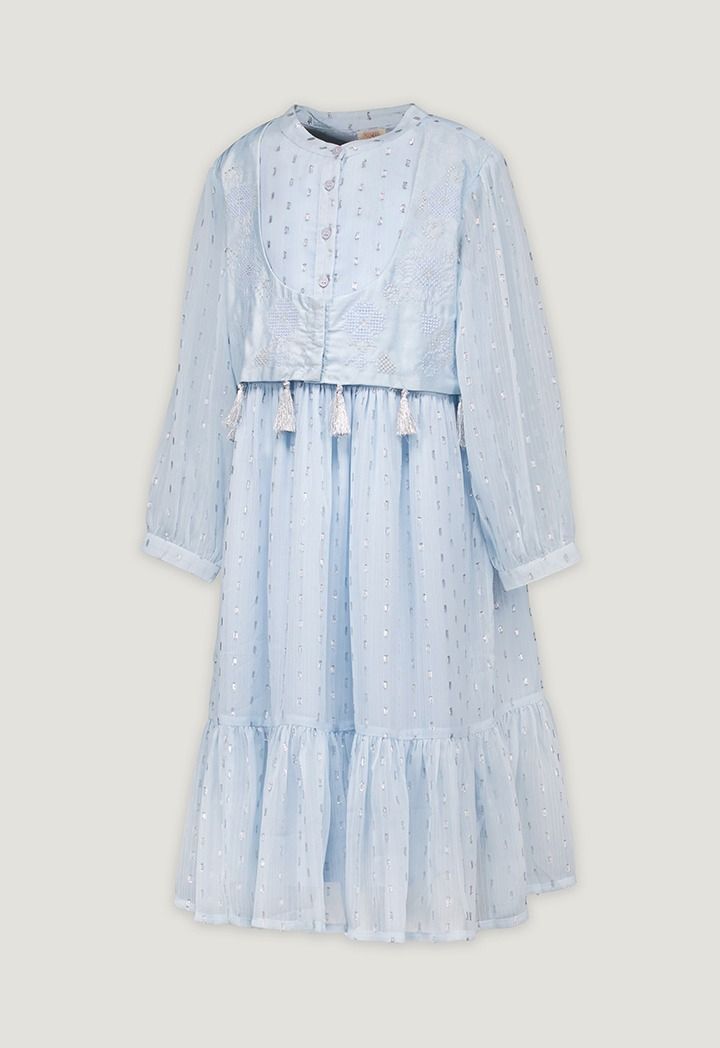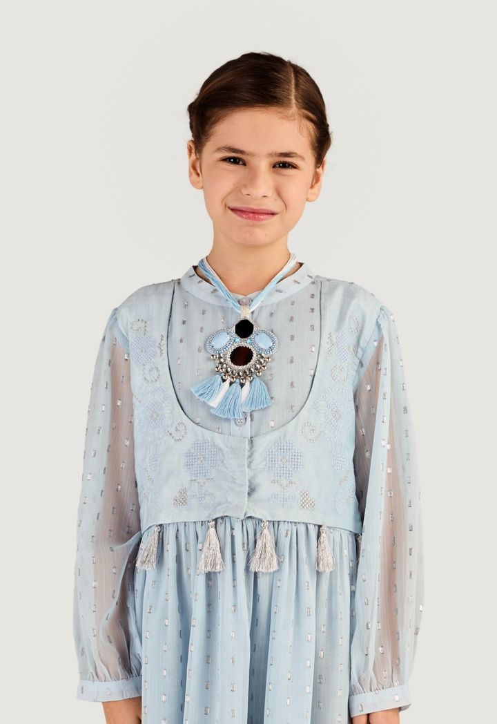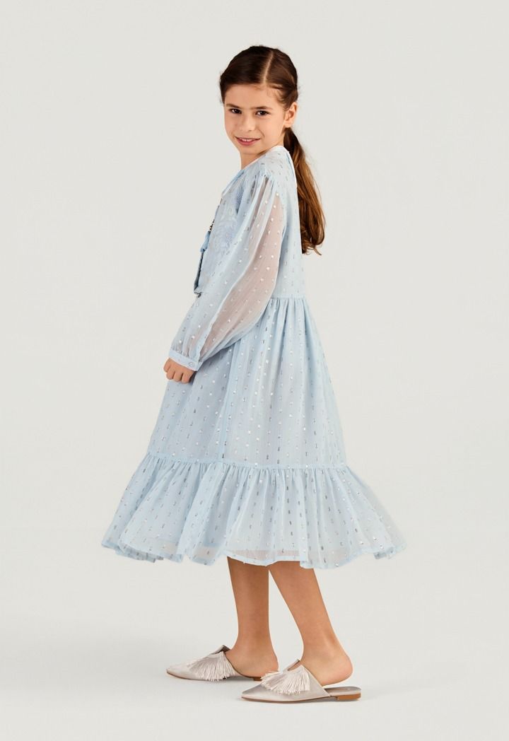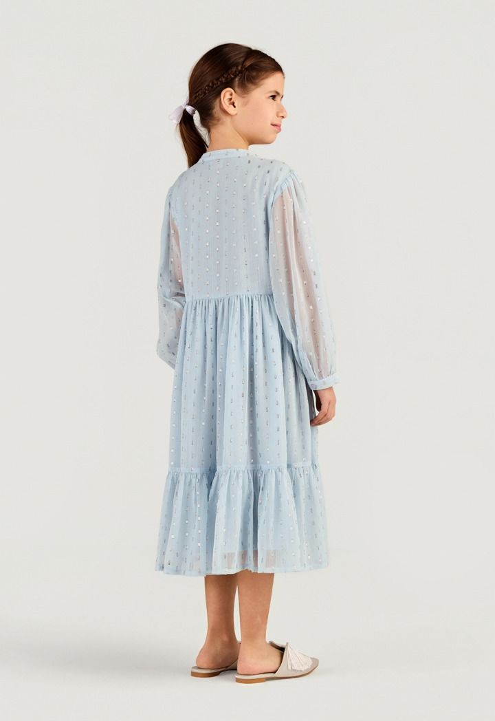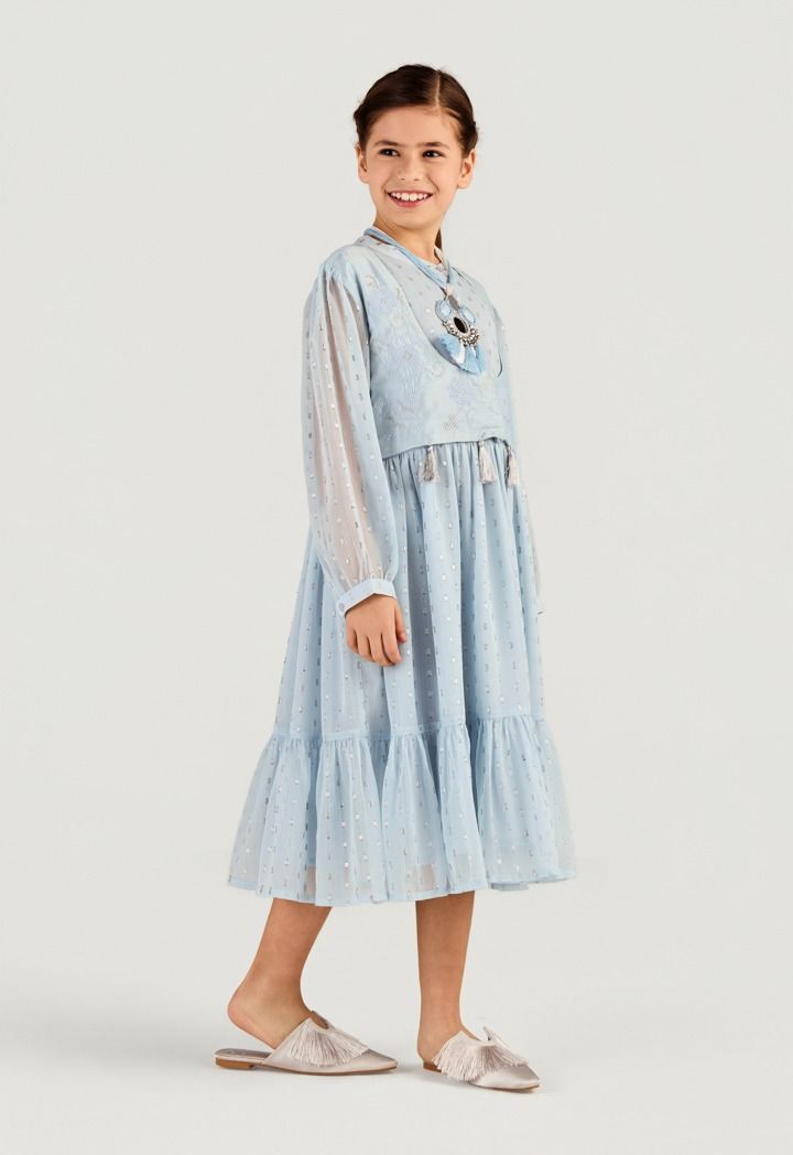 Twinkling chiffon lurex tiers sparkle with joy-perfect for kids festive gatherings and magical Ramadan moments.
