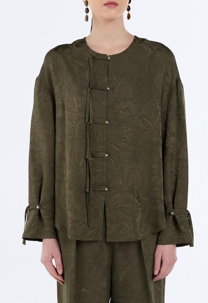 Chinese Style Leaf Jacquard Shirt |