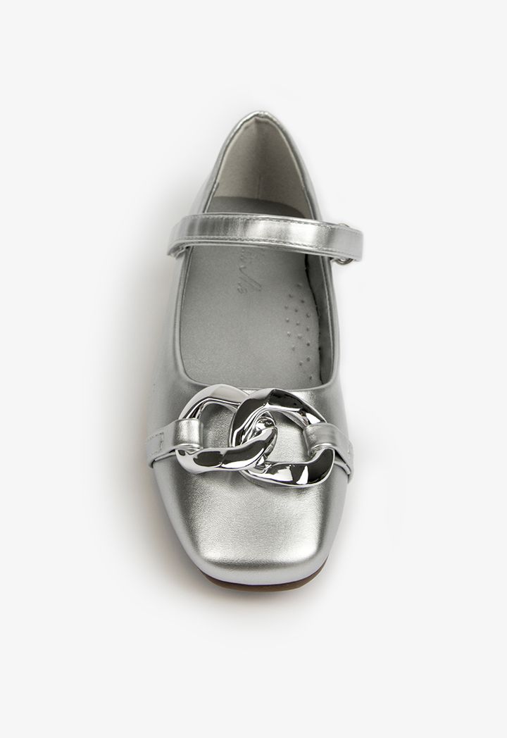 Embrace the edginess of this pair of flats, featuring a chunky and glossy chunky chain that completes the look.