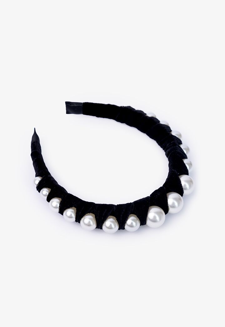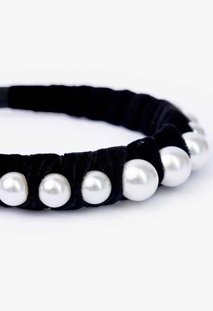 Style your hair with this comfortable yet stylish design, combining between the elegance of the faux pearls and the softness and comfort of the velvet thick band.
