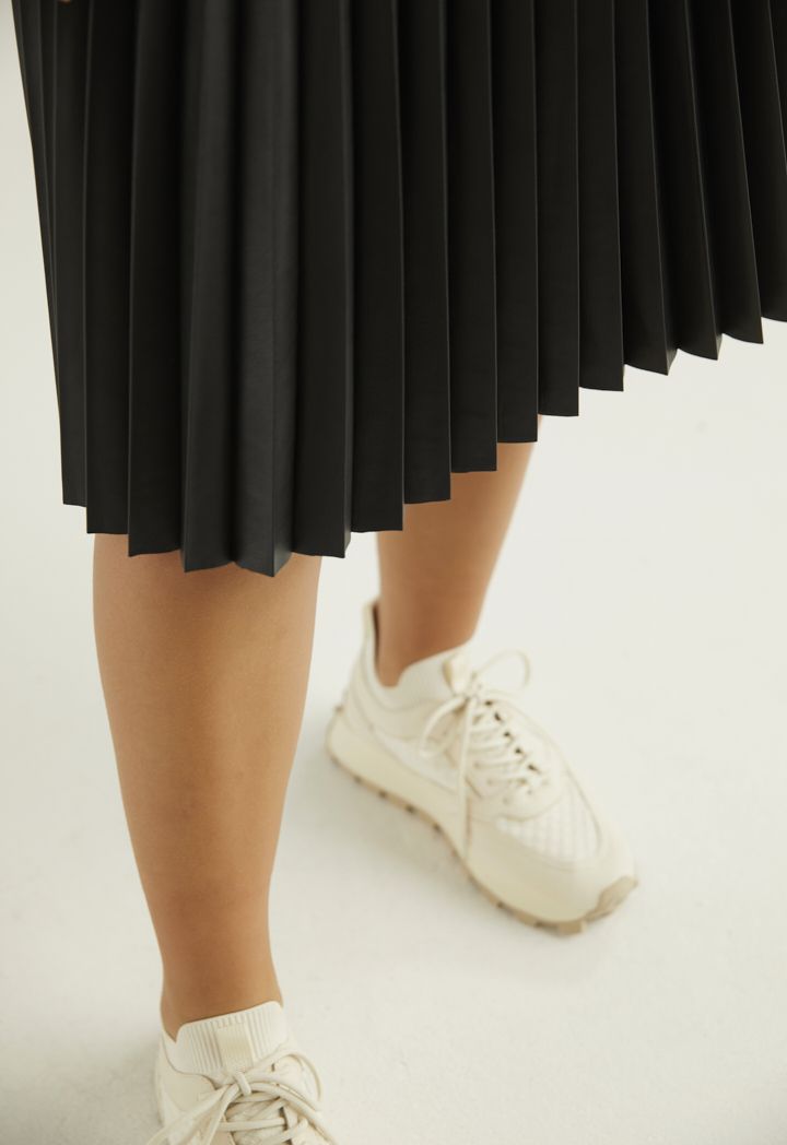 Put this skirt on, featuring a solid yet pleated design that is both classic and stylish.