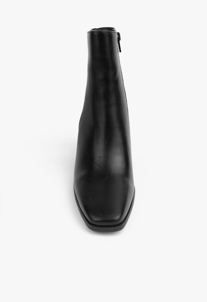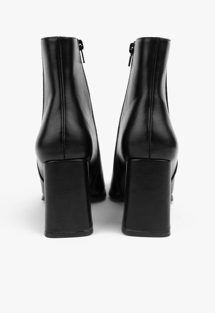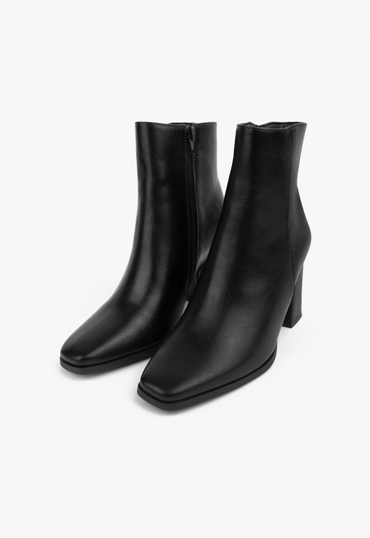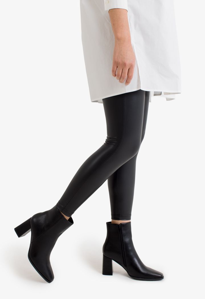 A pair of pu leather heels that feature a square toe and a comfortable chunky heel that would go with anything that you style it with.