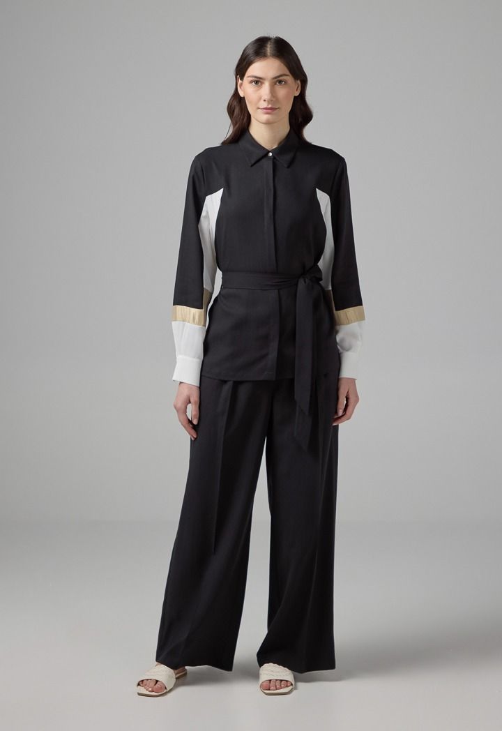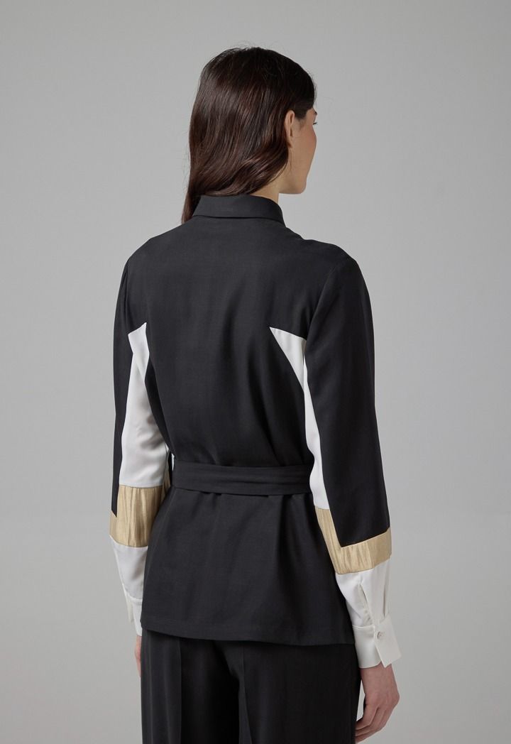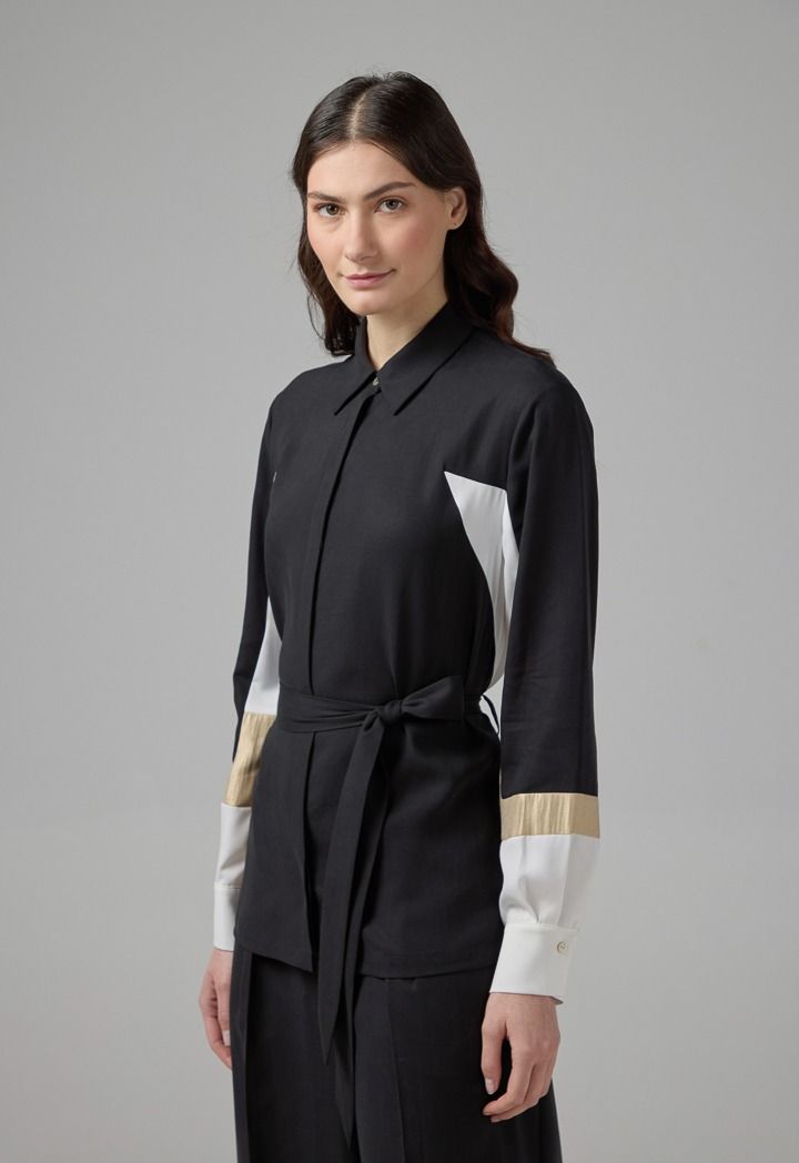 Color Block Relaxed Fit Belted Shirt |