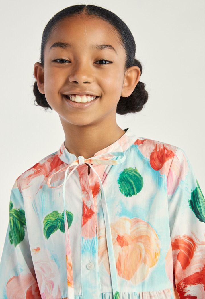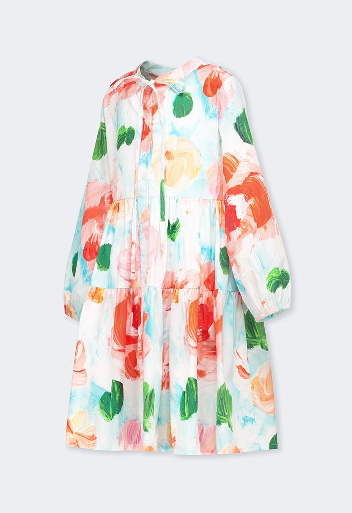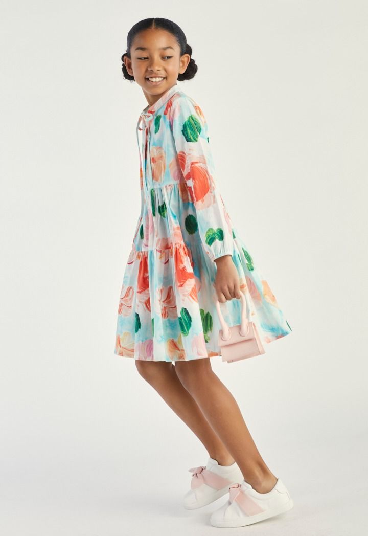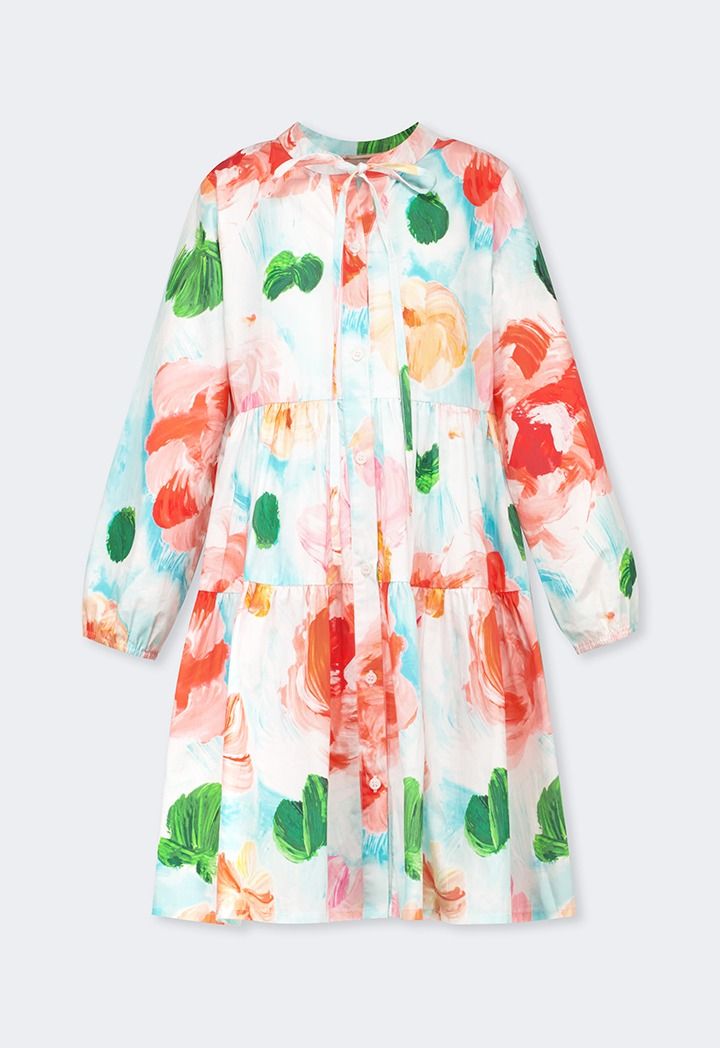 This dress is sure to steal the looks, thanks to its vibrant printed design and tie neck.