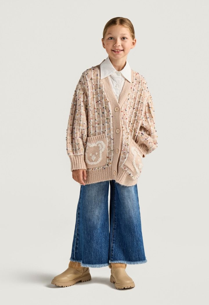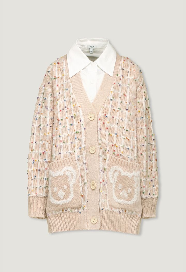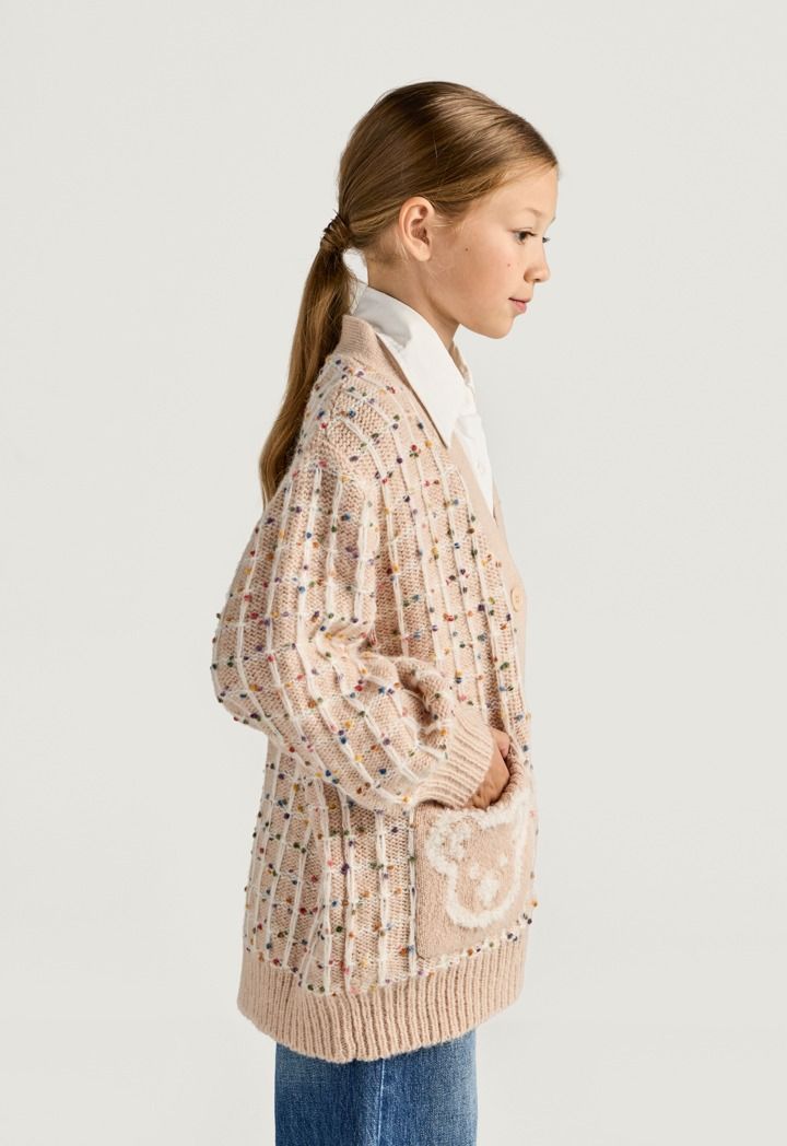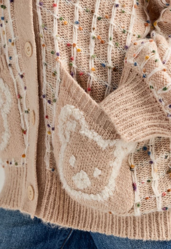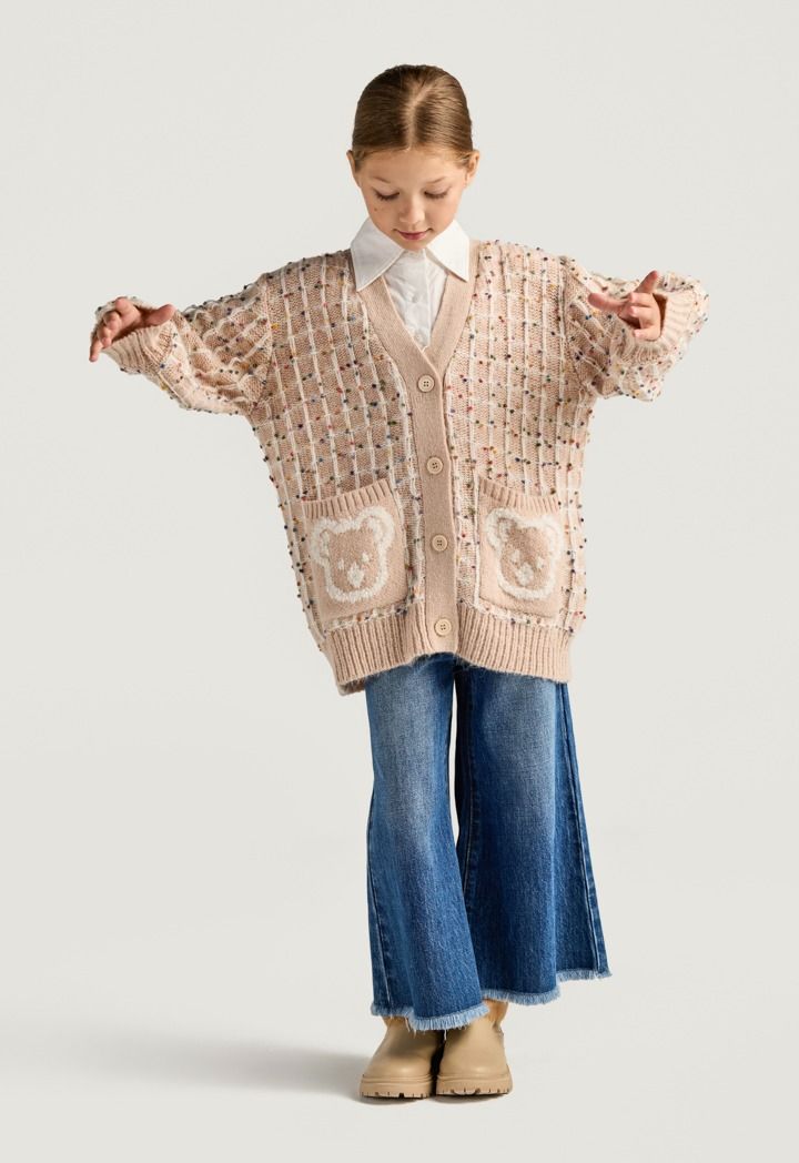 This colorful long-sleeve cardigan with front pockets pairs well with any outfit for all-day wear.