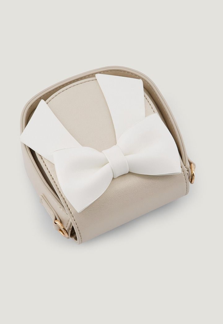 Sophisticated crossbody bag with bow and shoulder chain-effortless elegance in a playful petite package.