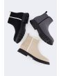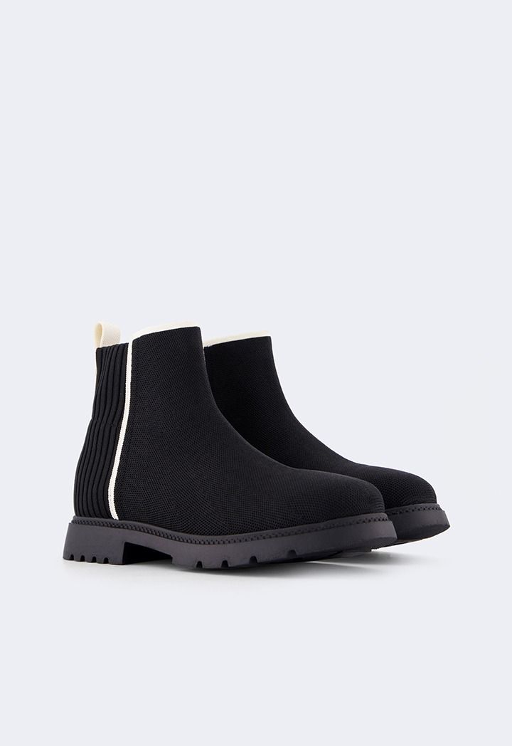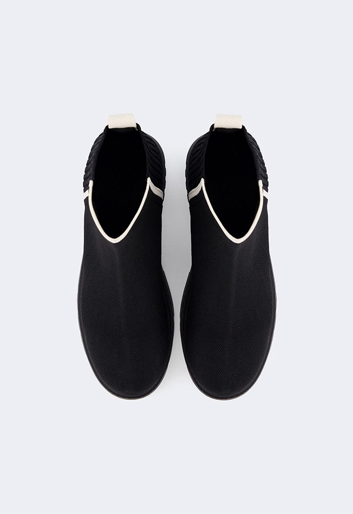 A contrast pair of ankle boots that are Flyknit and feature a laceless design.