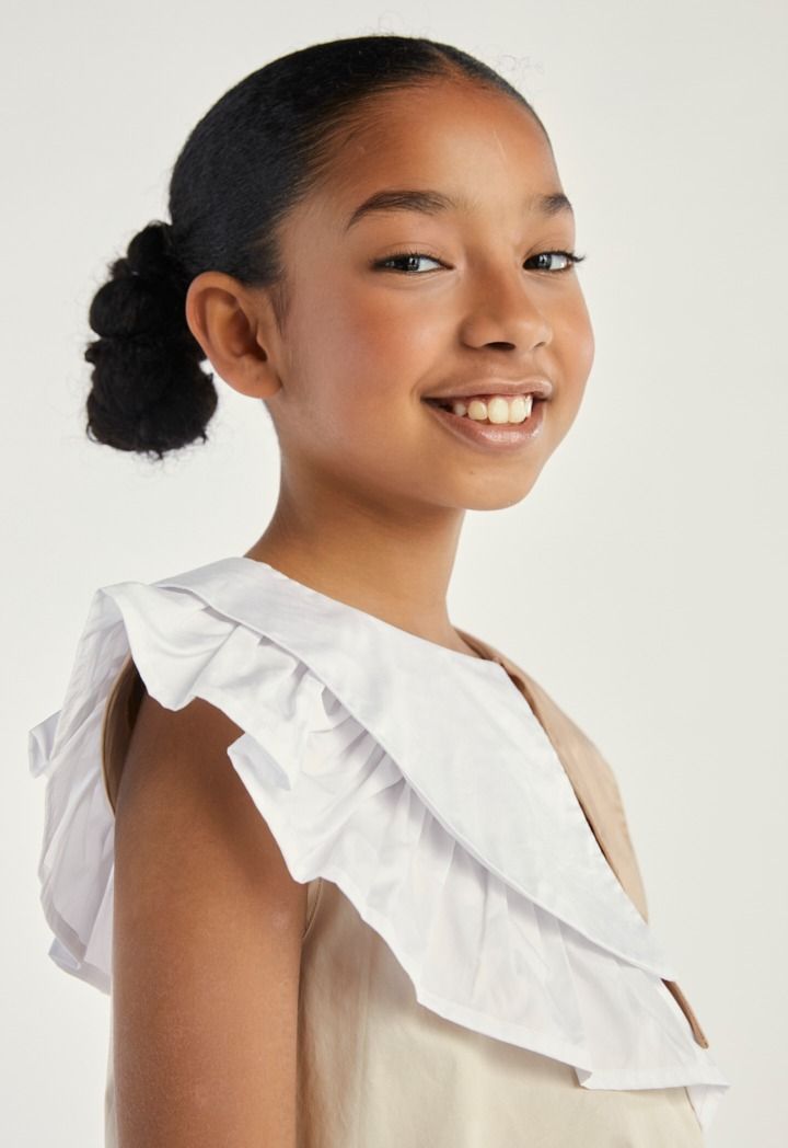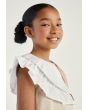 A unique dress that features a contrast dramatic collar and short sleeves.