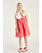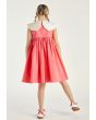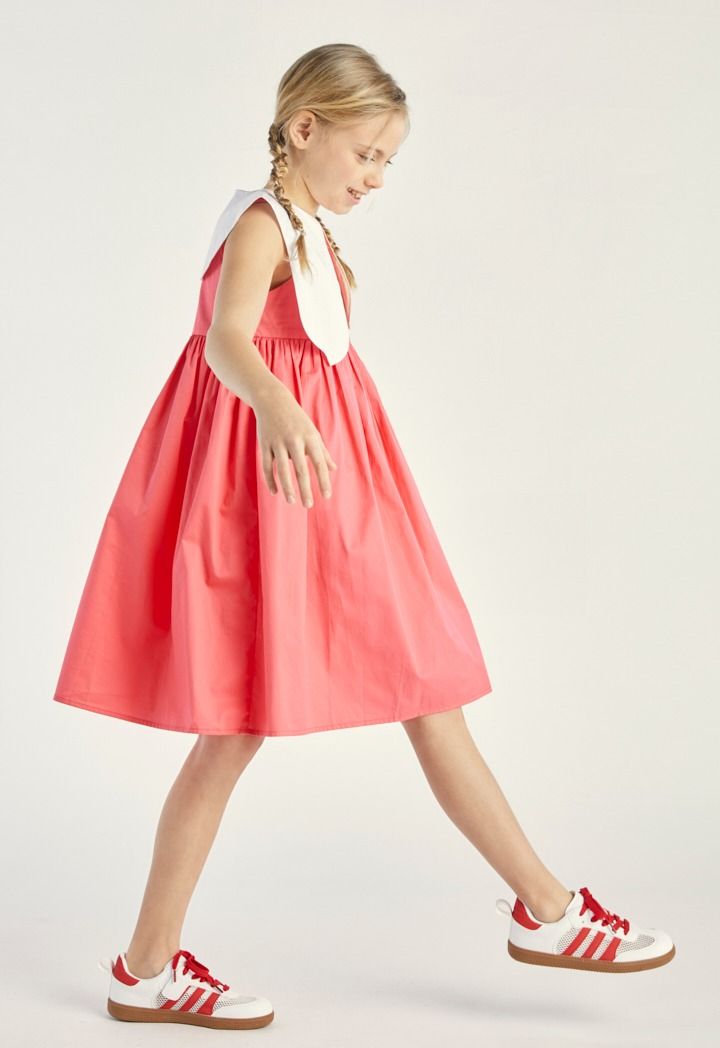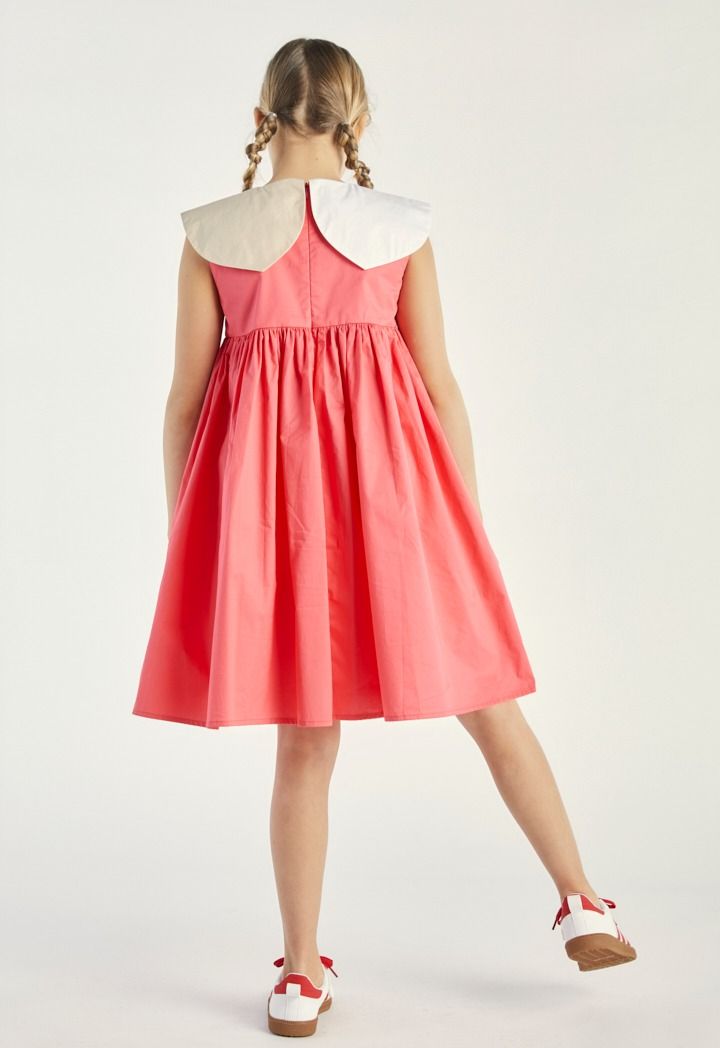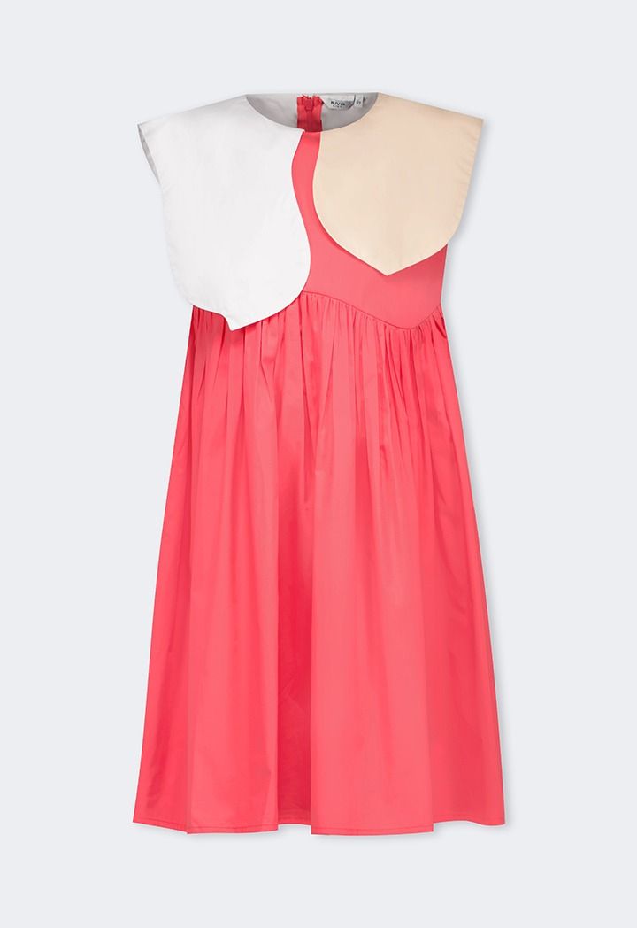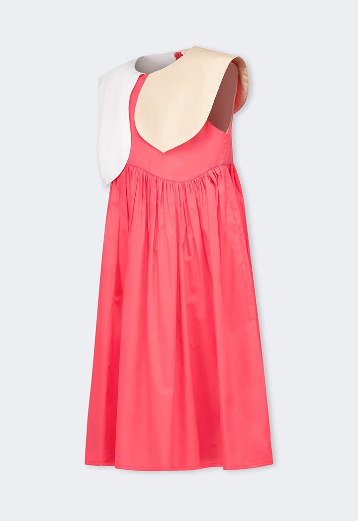 A unique dress that features a contrast dramatic collar and sleeveless design.