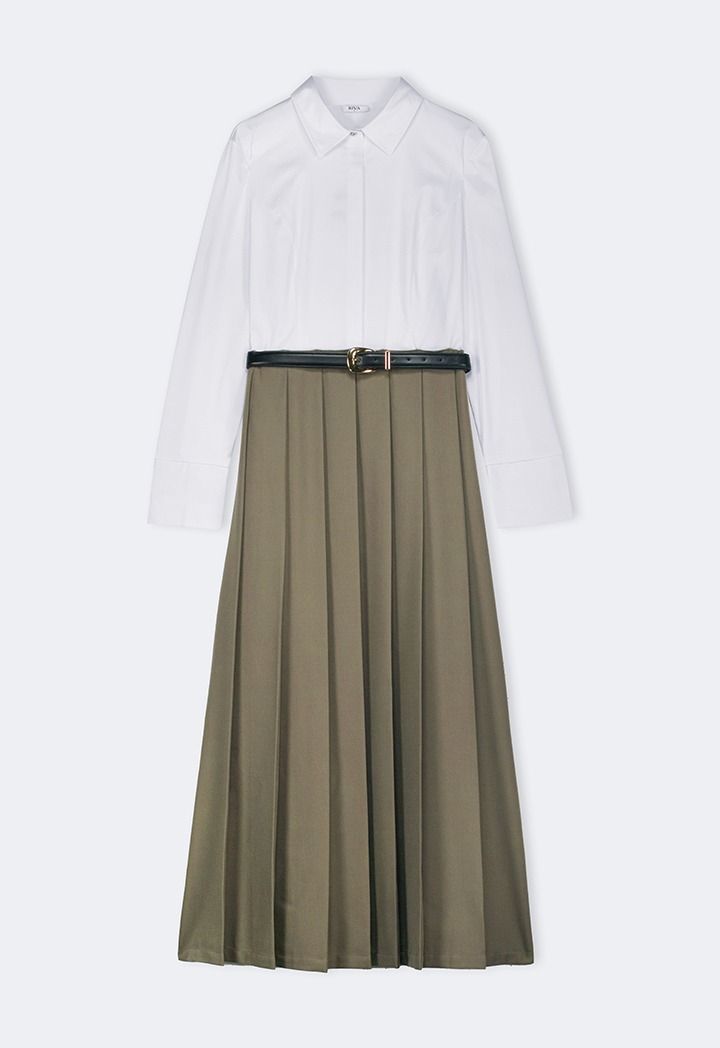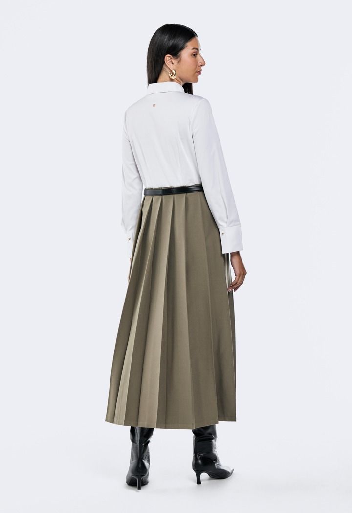 Design: Contrast, Pleated Skirt, PU Leather Belt