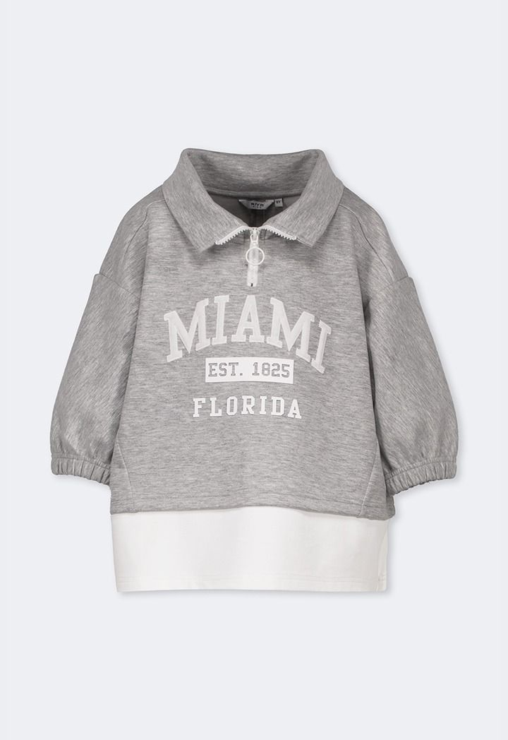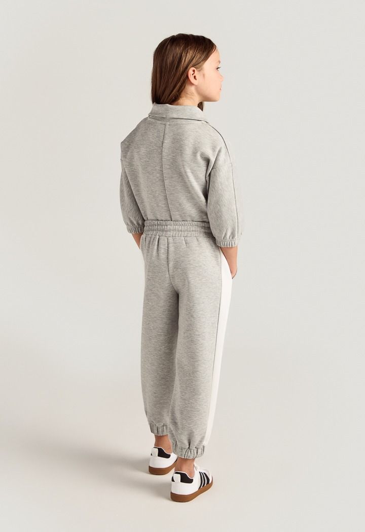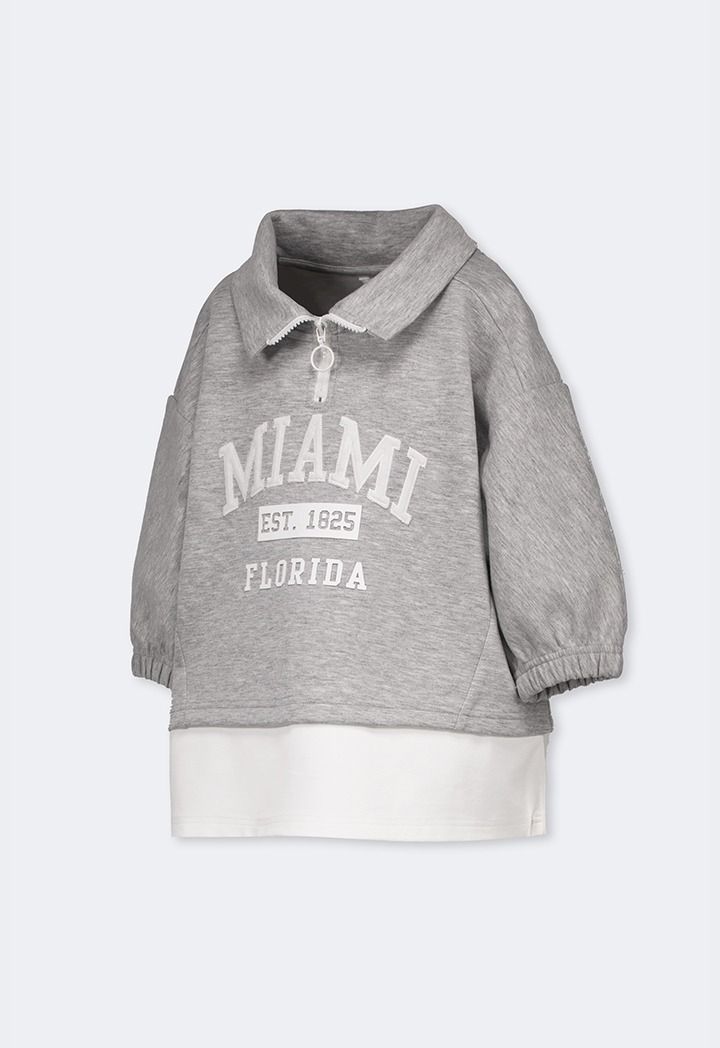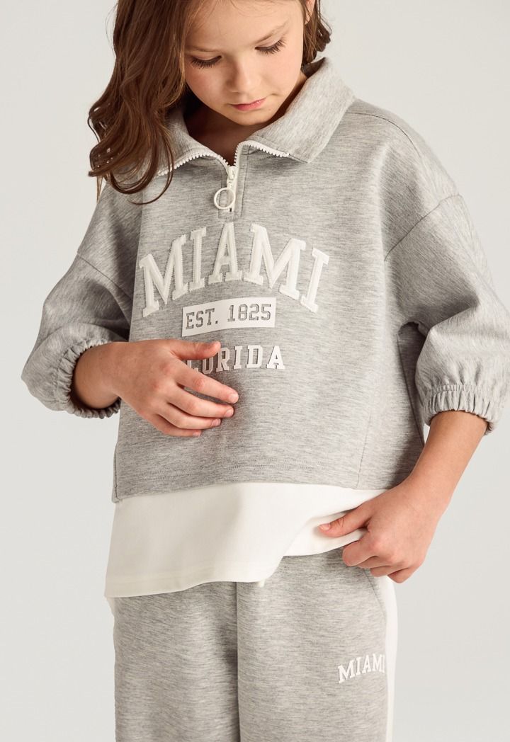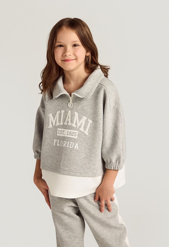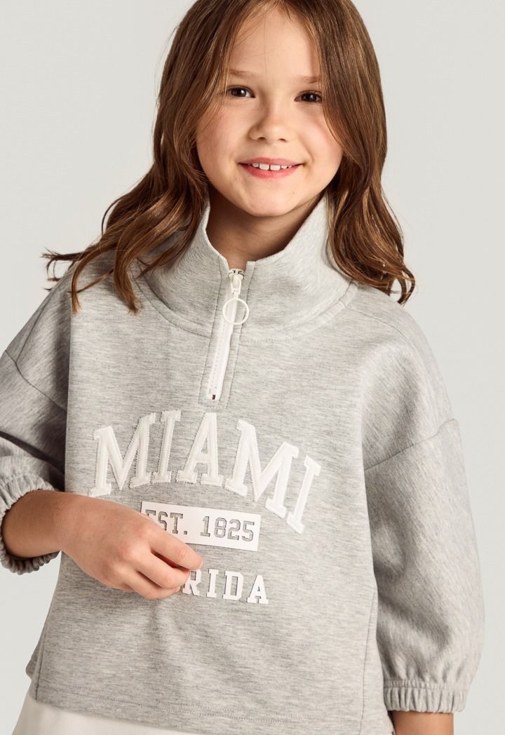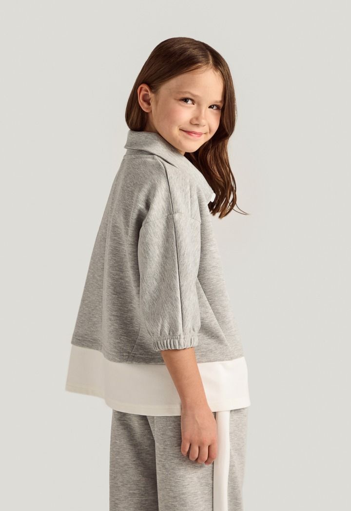 A contrast sweatshirt that features a front zipper and long sleeves.