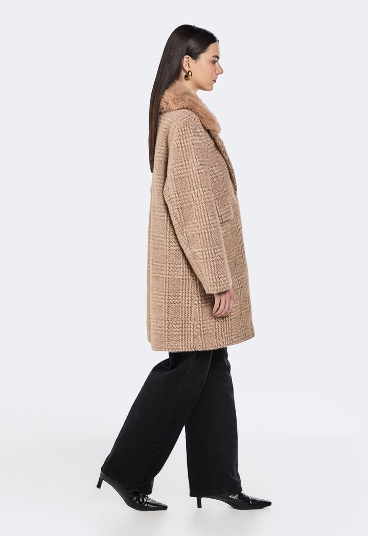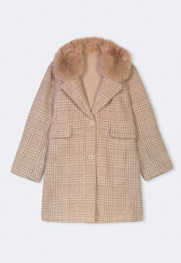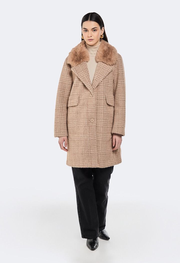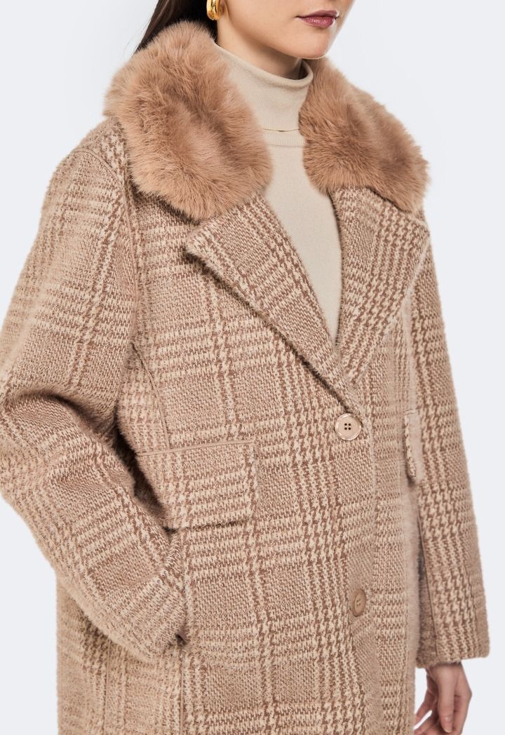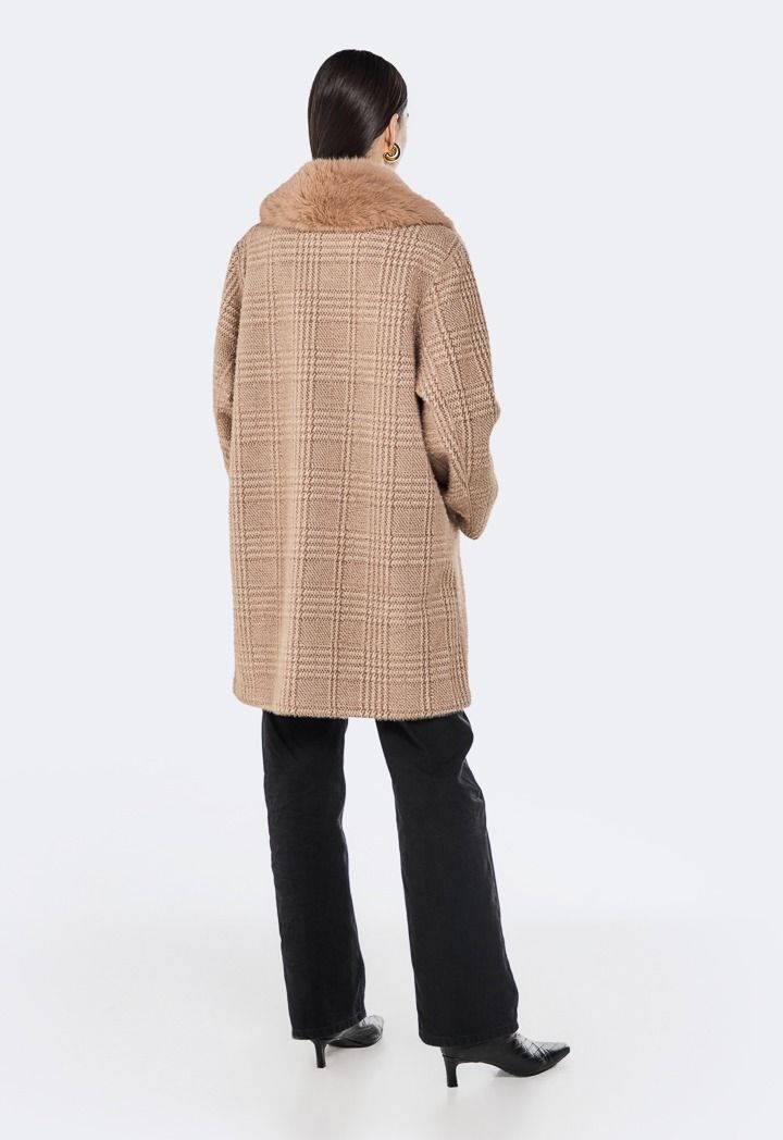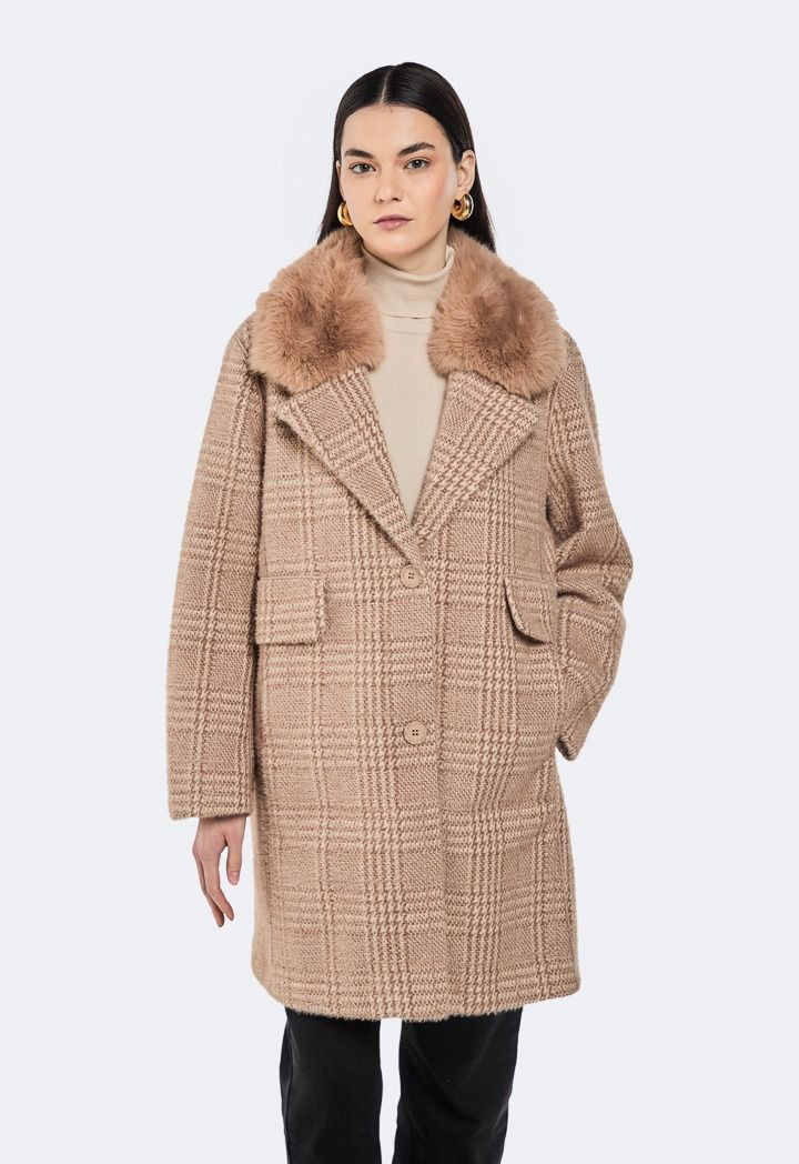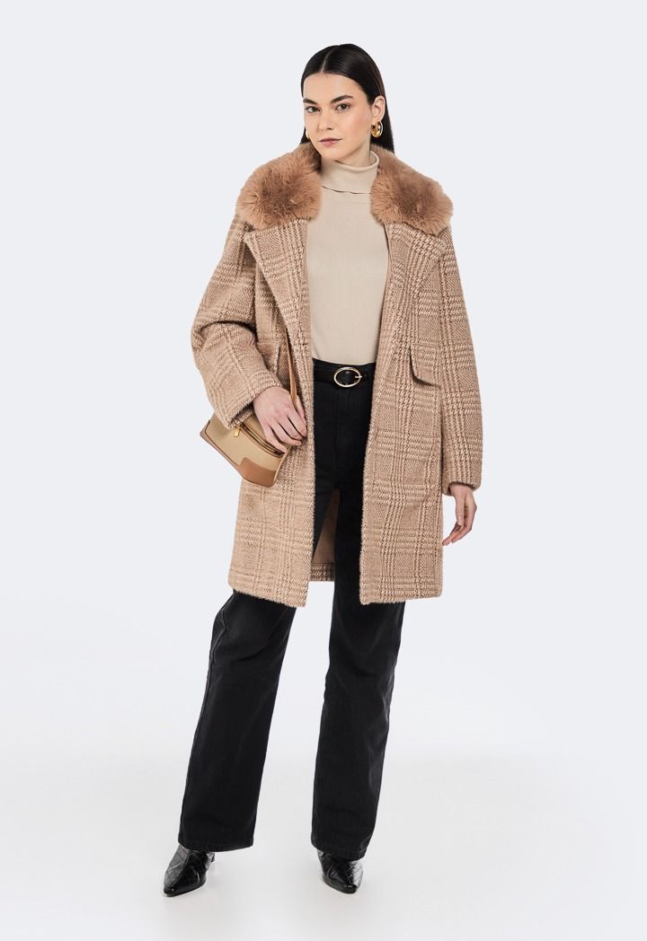 An elegant coat that is fit for your winter outfits thanks to its faux fur embellished two toned design.
