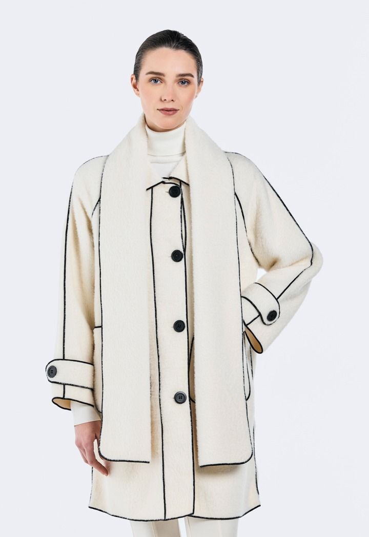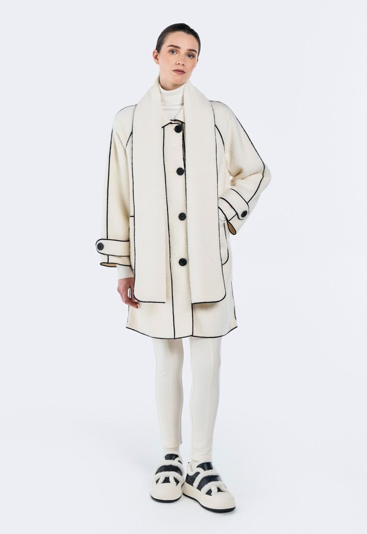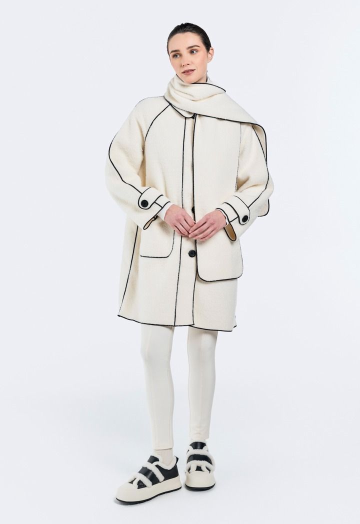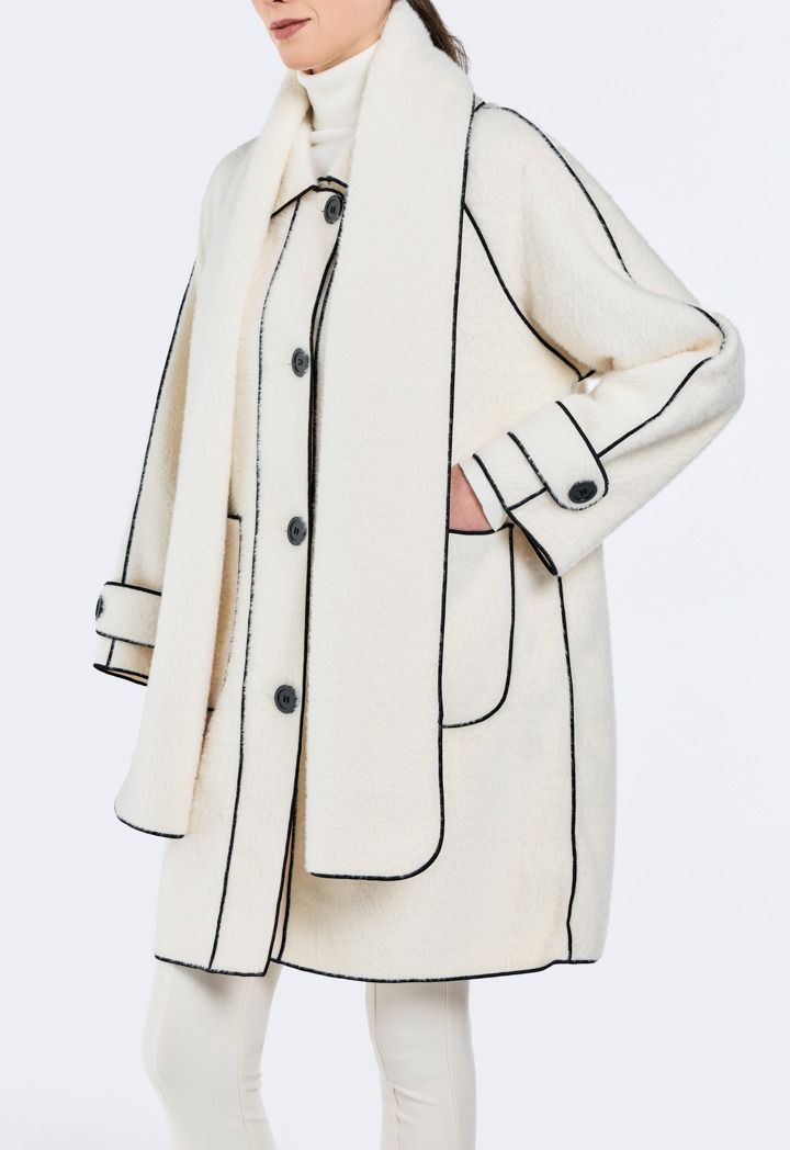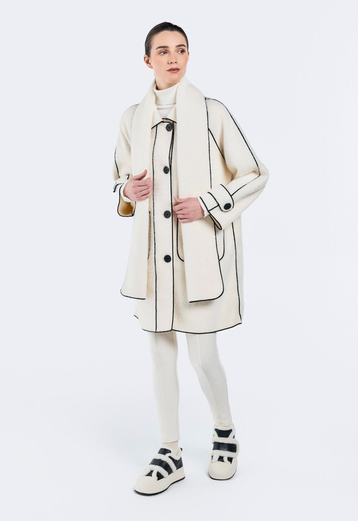 A modern classic Jacket, featuring a contrast faux fur design and a matching design scarf.