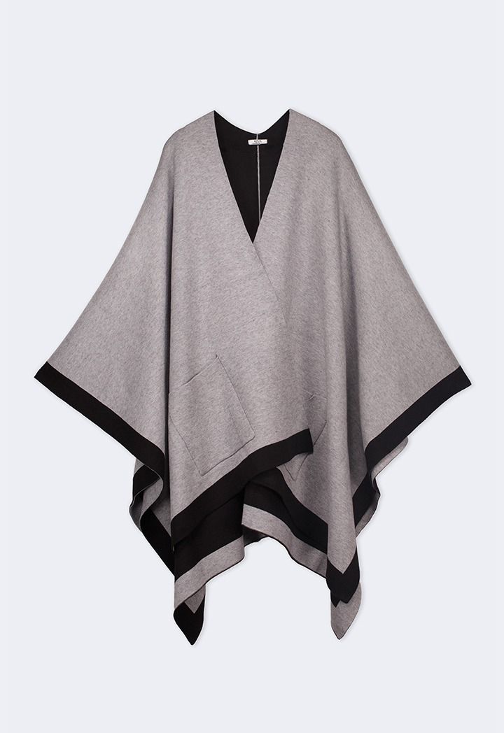 A knitted poncho that features a contrast hems design to add to its appeal.