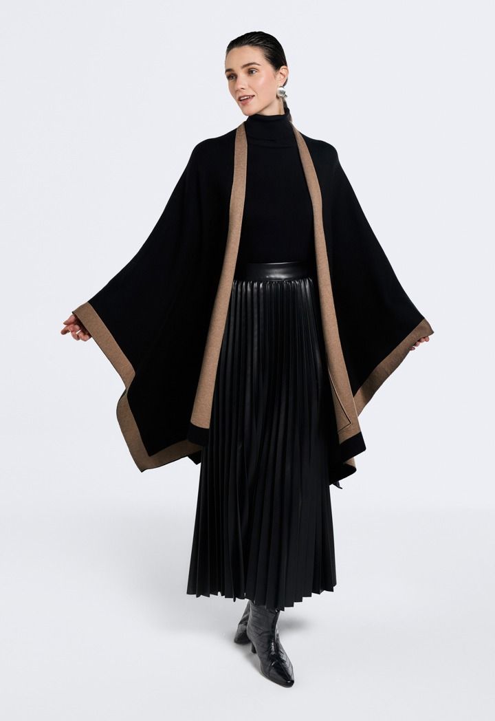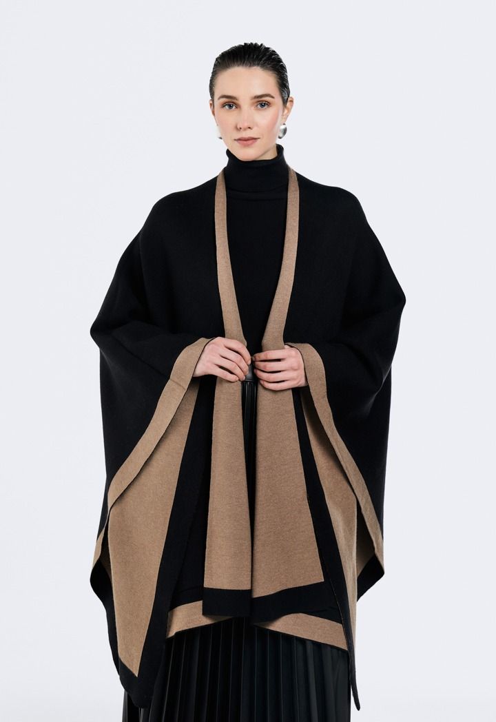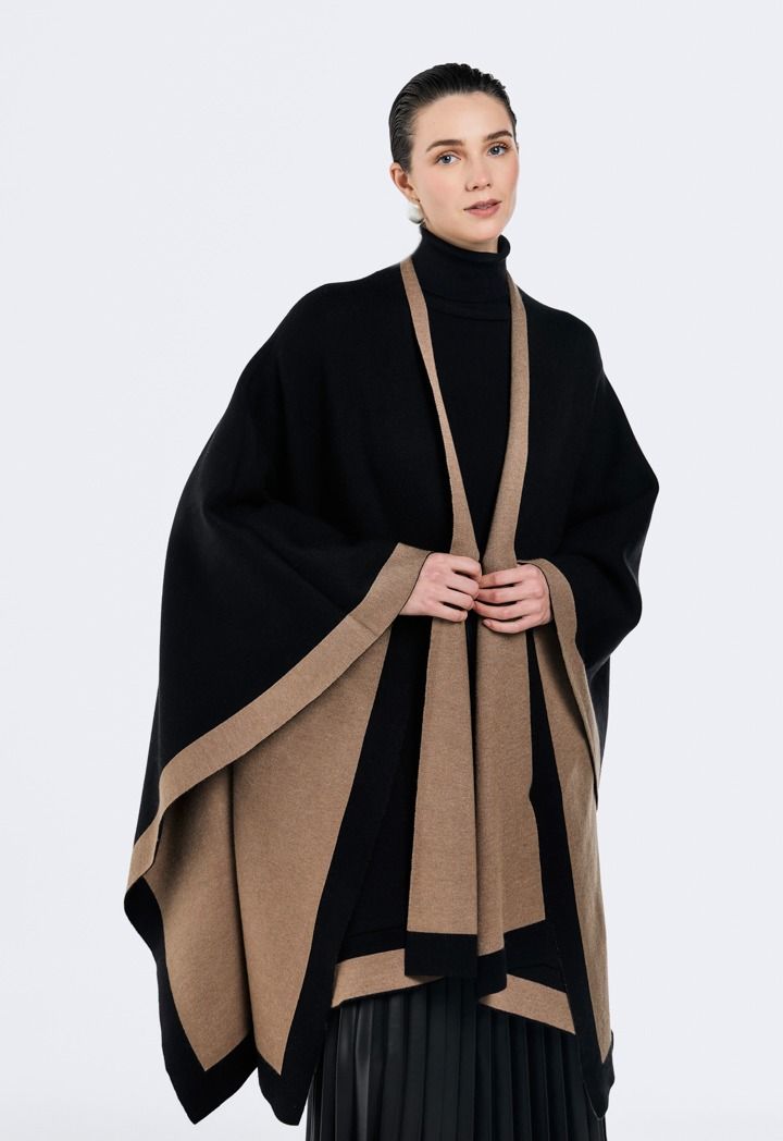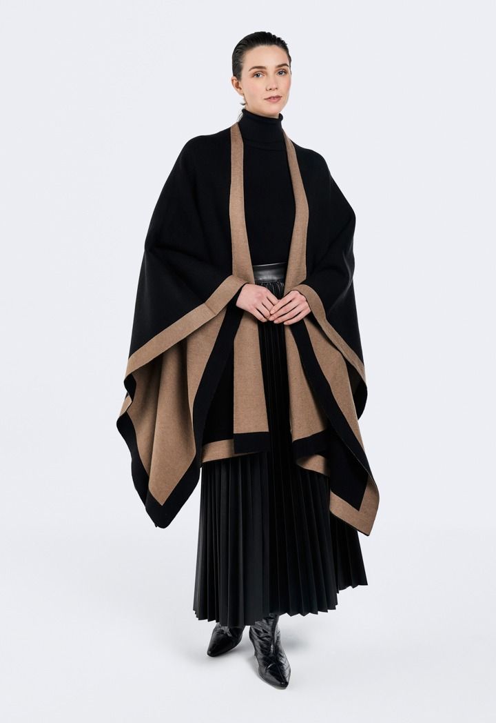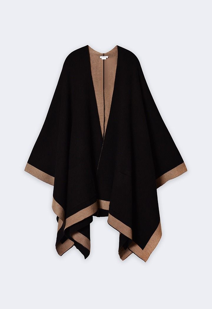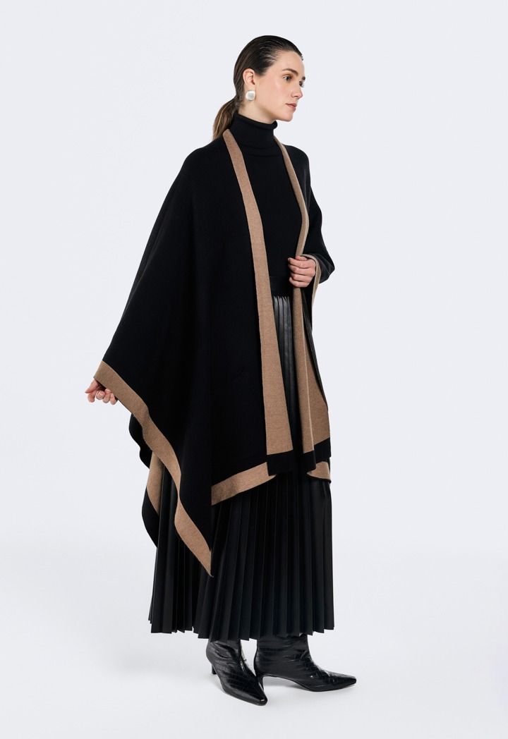A knitted poncho that features a contrast hems design to add to its appeal.
