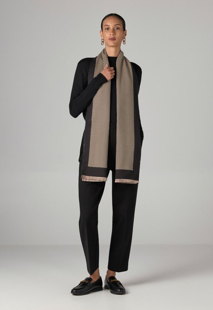 Engulf yourself with warmth with this contrast intricate knitted winter shawl.