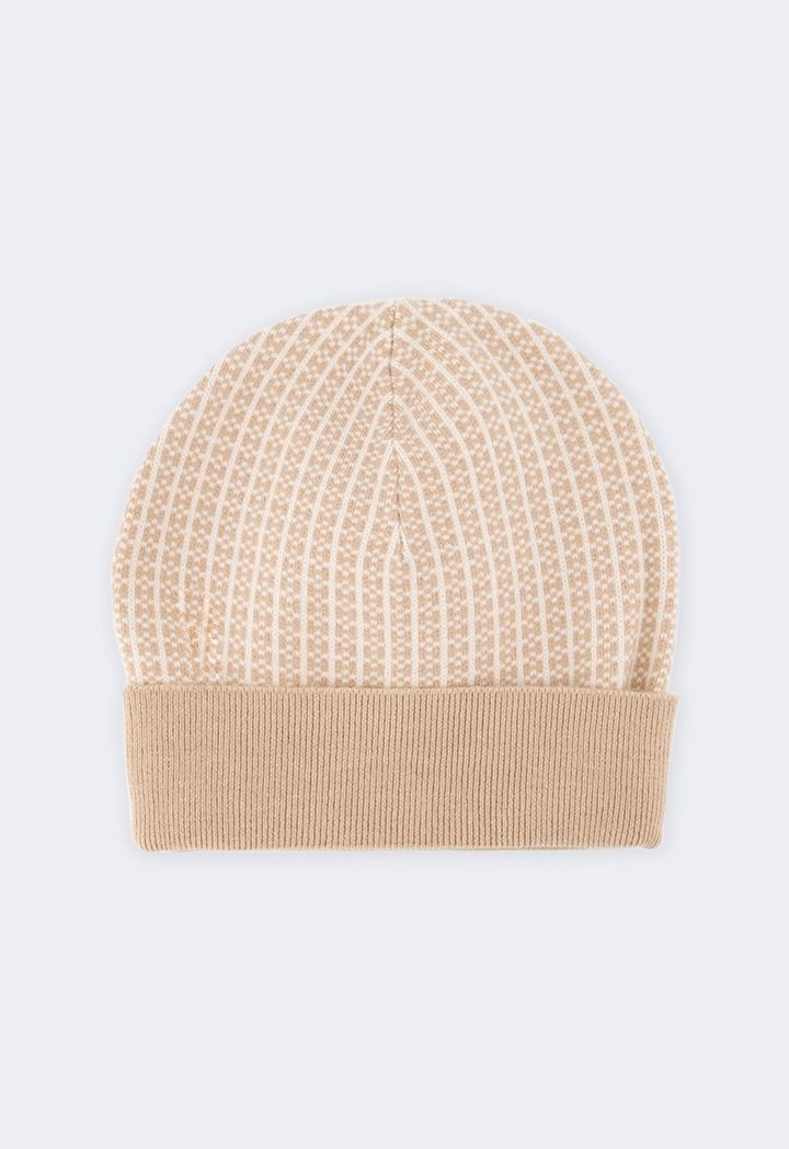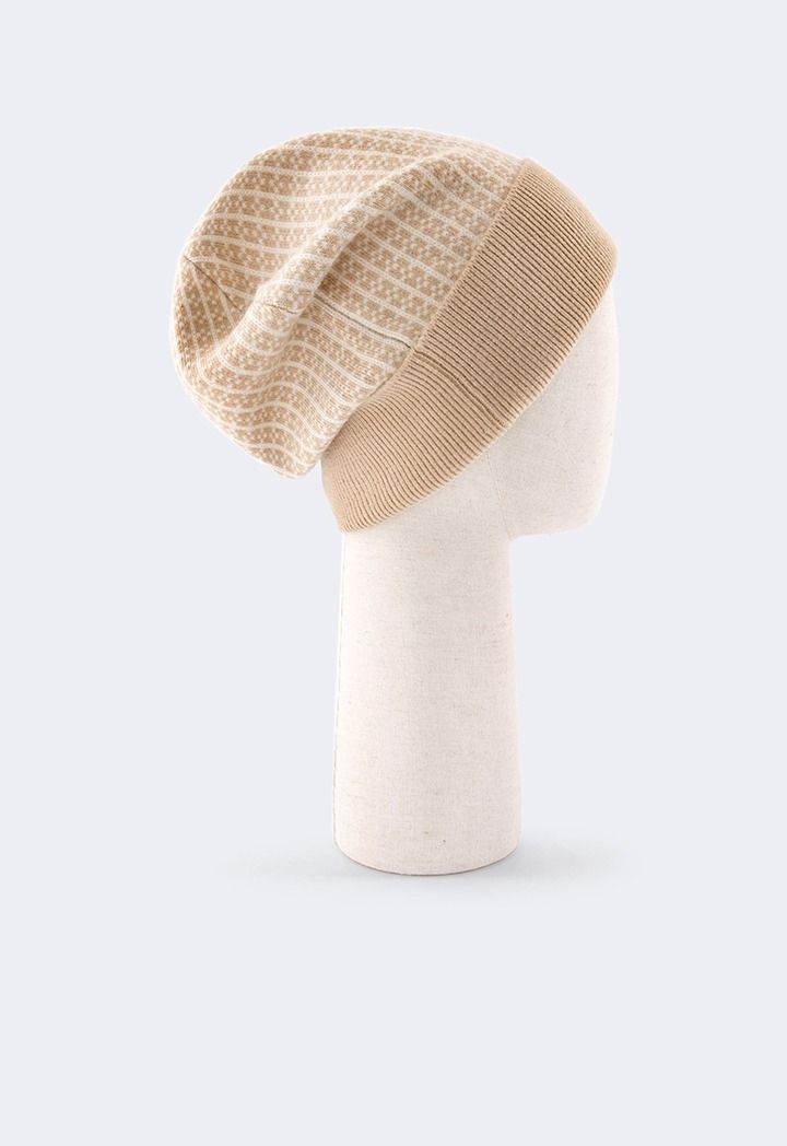 A contrast knitted beanie, the perfect cozy accessory for this winter season.