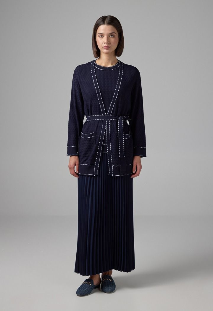 Design: Contrast, Knitted, Belted, Ribbed Hem, Front Pocket