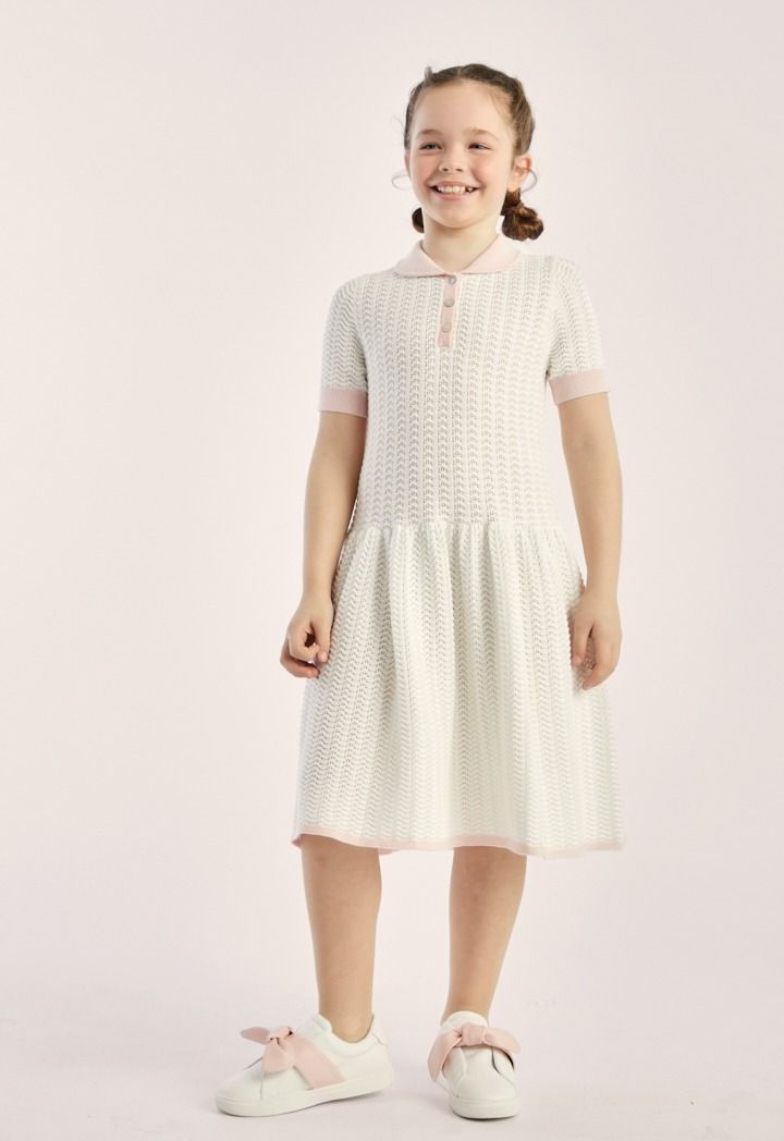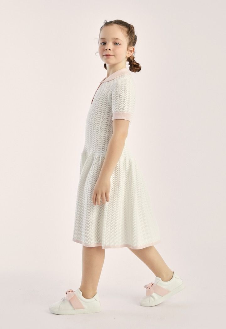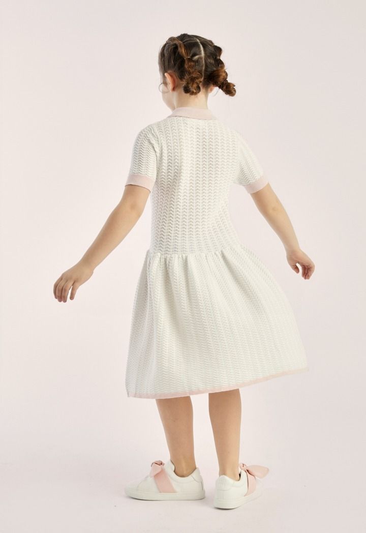A cozy and stylish contrast knitted dress, perfect for any occasion.
