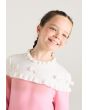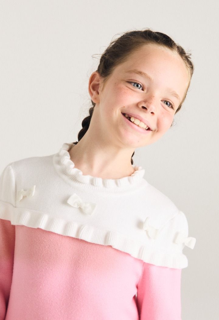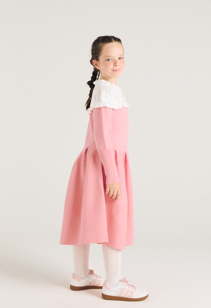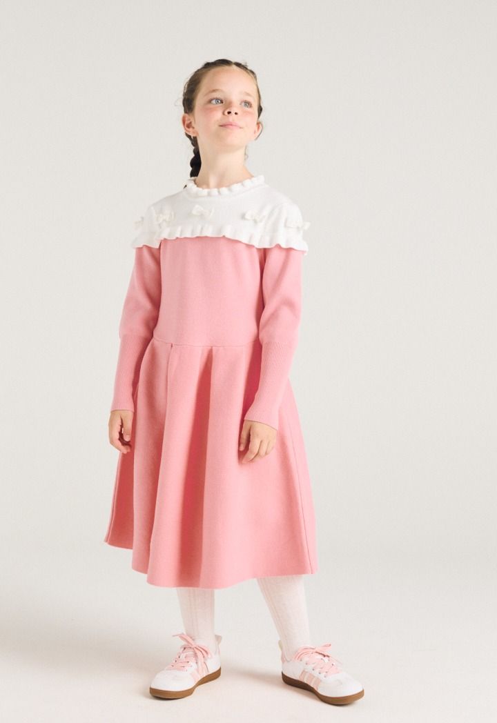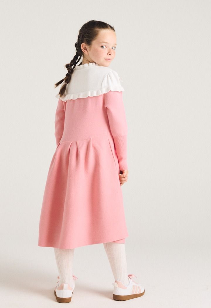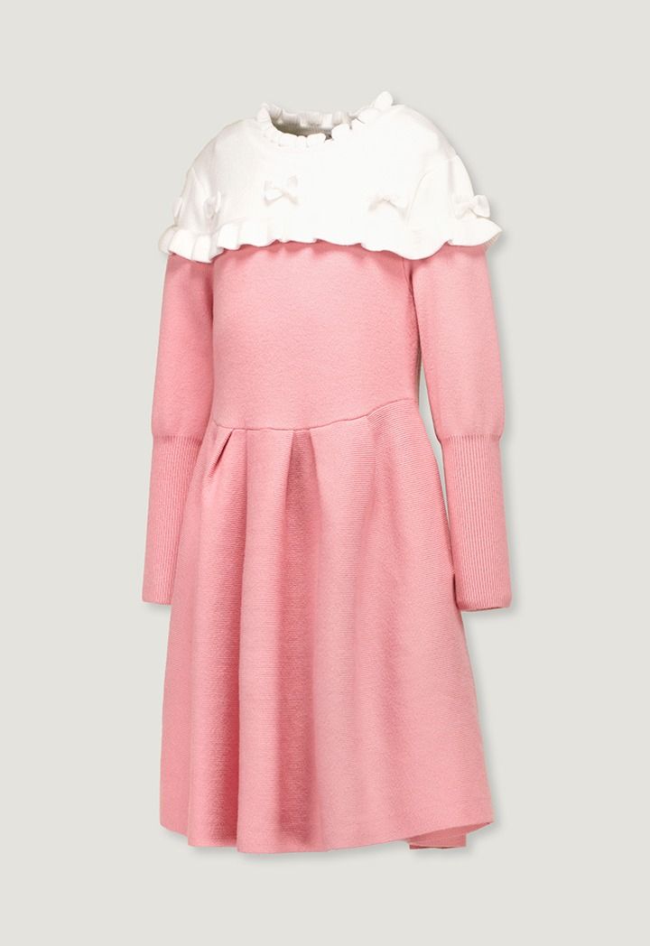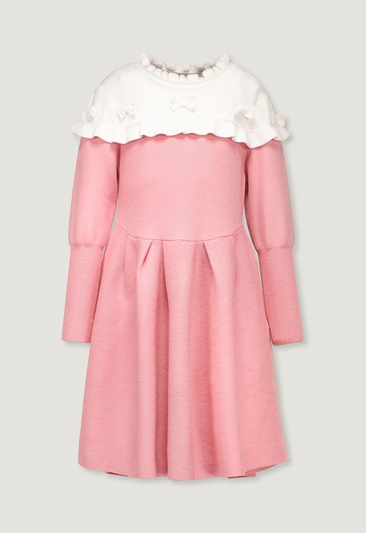 A warm and stylish dress that features a contrast knitted design with ruffle design.