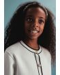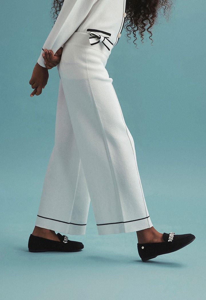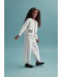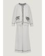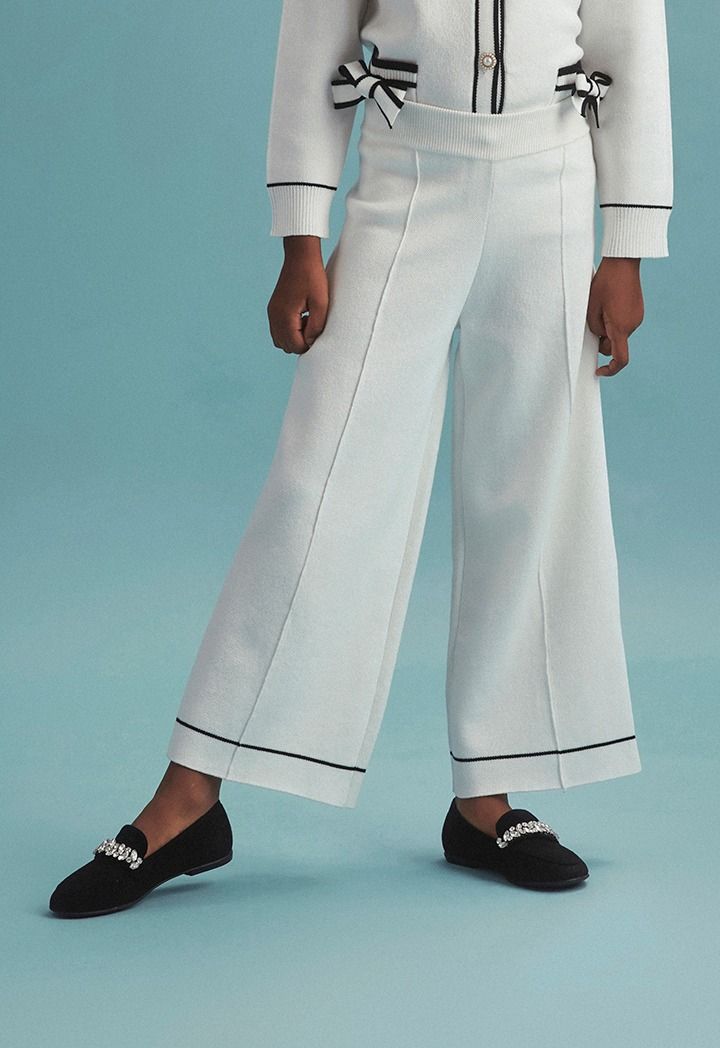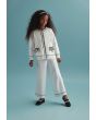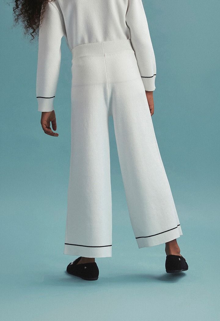 A knitted set that features a contrast jacket and a matching pair of pants.
