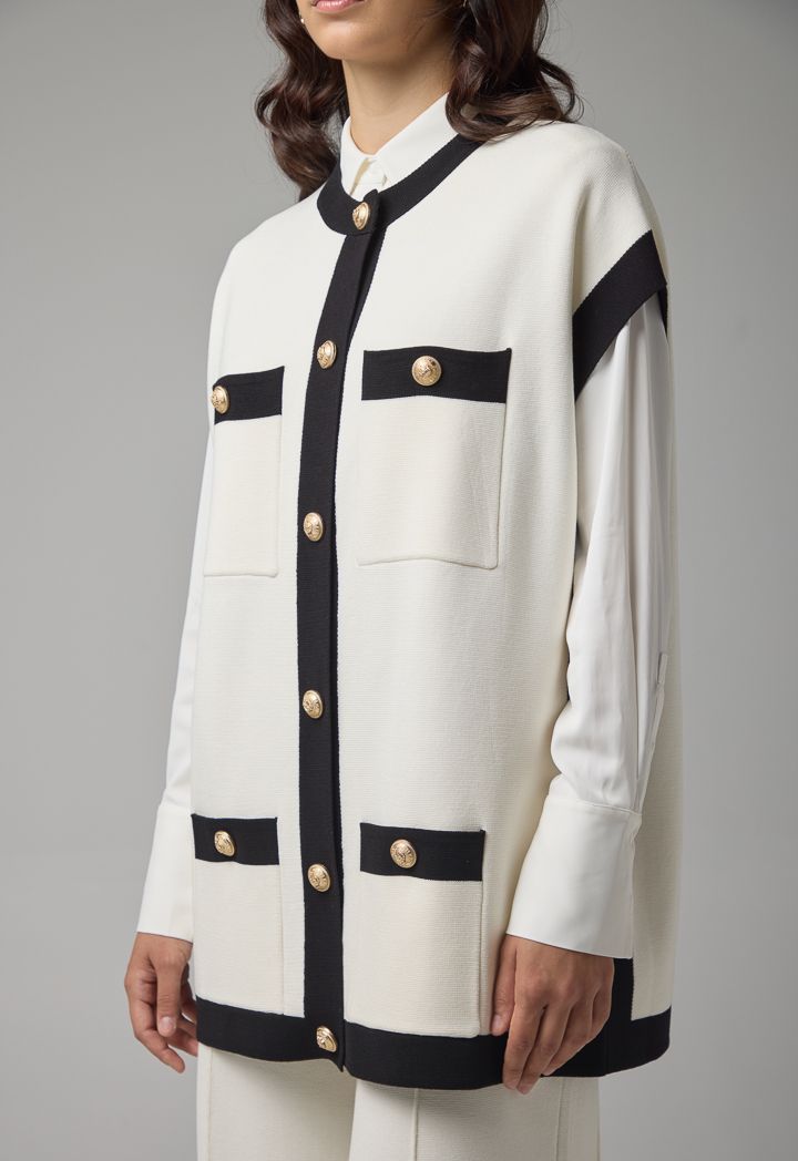 Contrast Knitted Sleeveless Knitwear Sweater Vest
