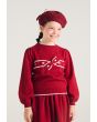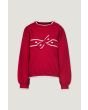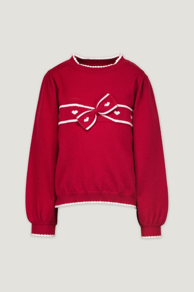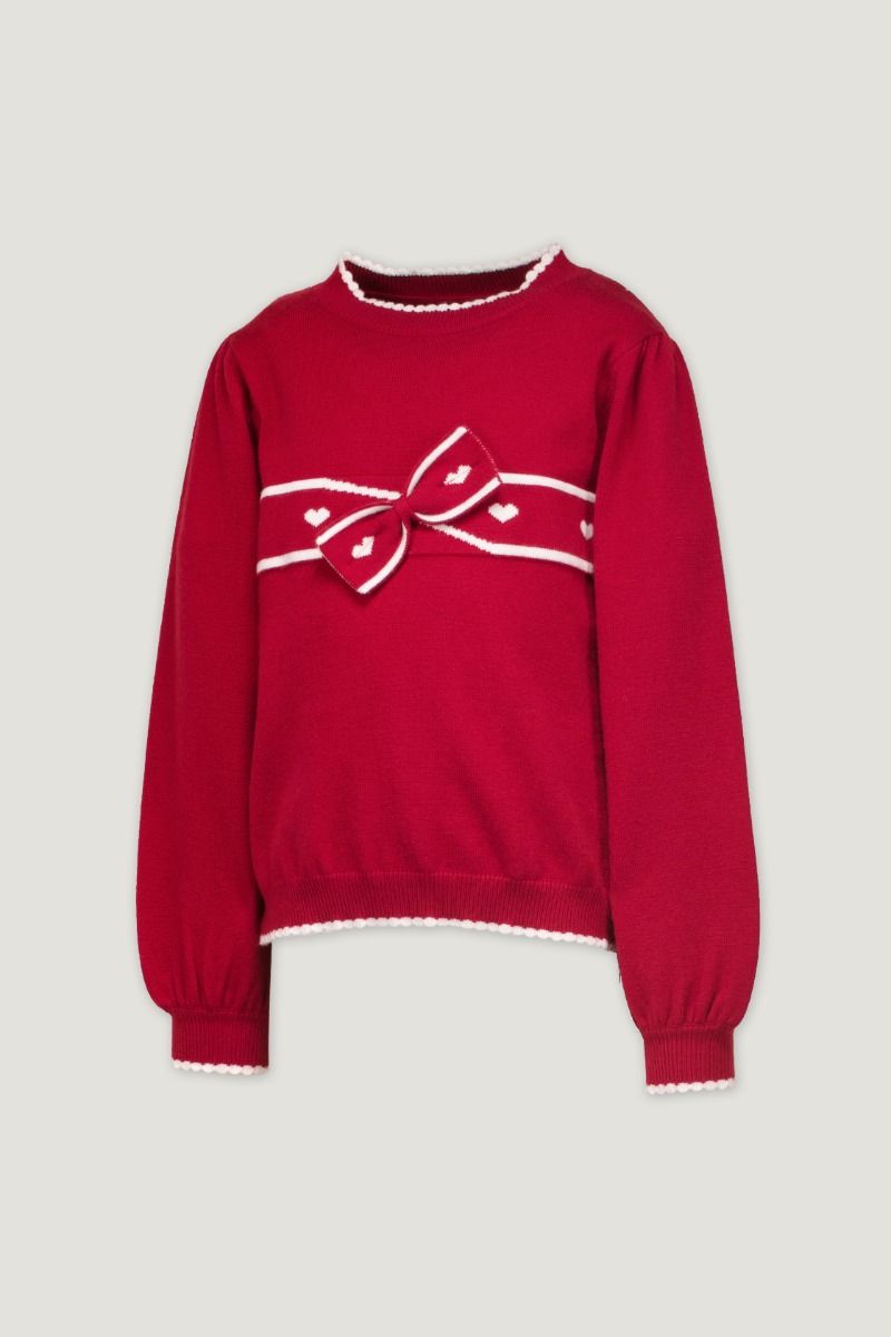 A contrast knitted sweater that features a bow embellished design.