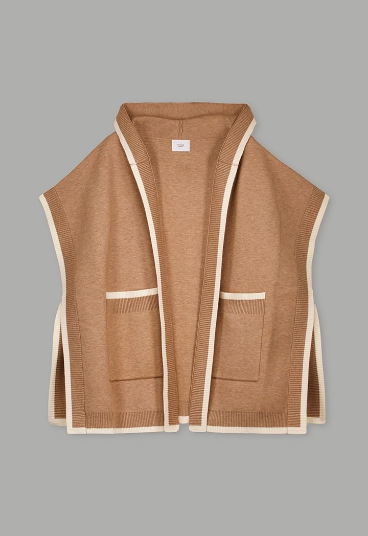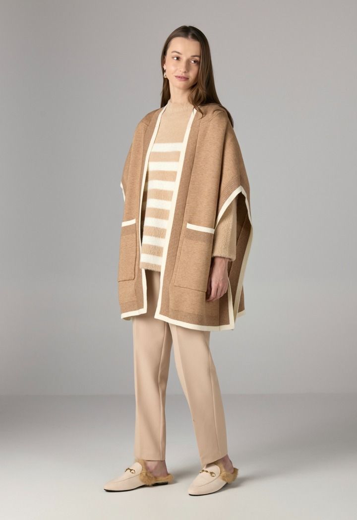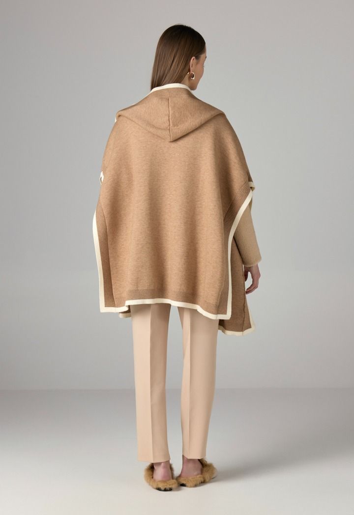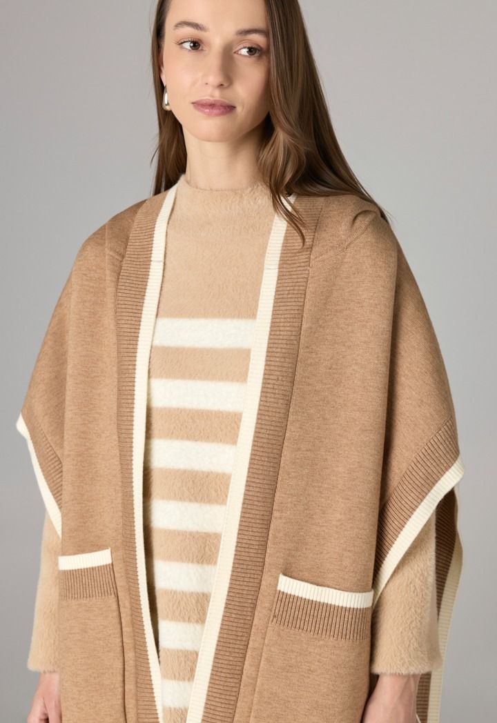 This contrast poncho is perfect for quick outings as a cozy outerwear piece for cold mornings.