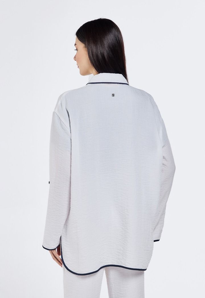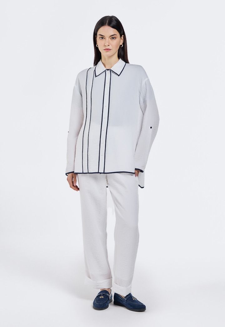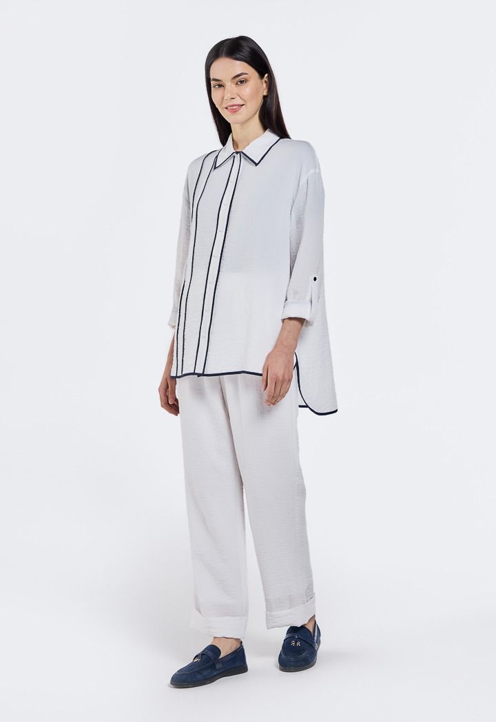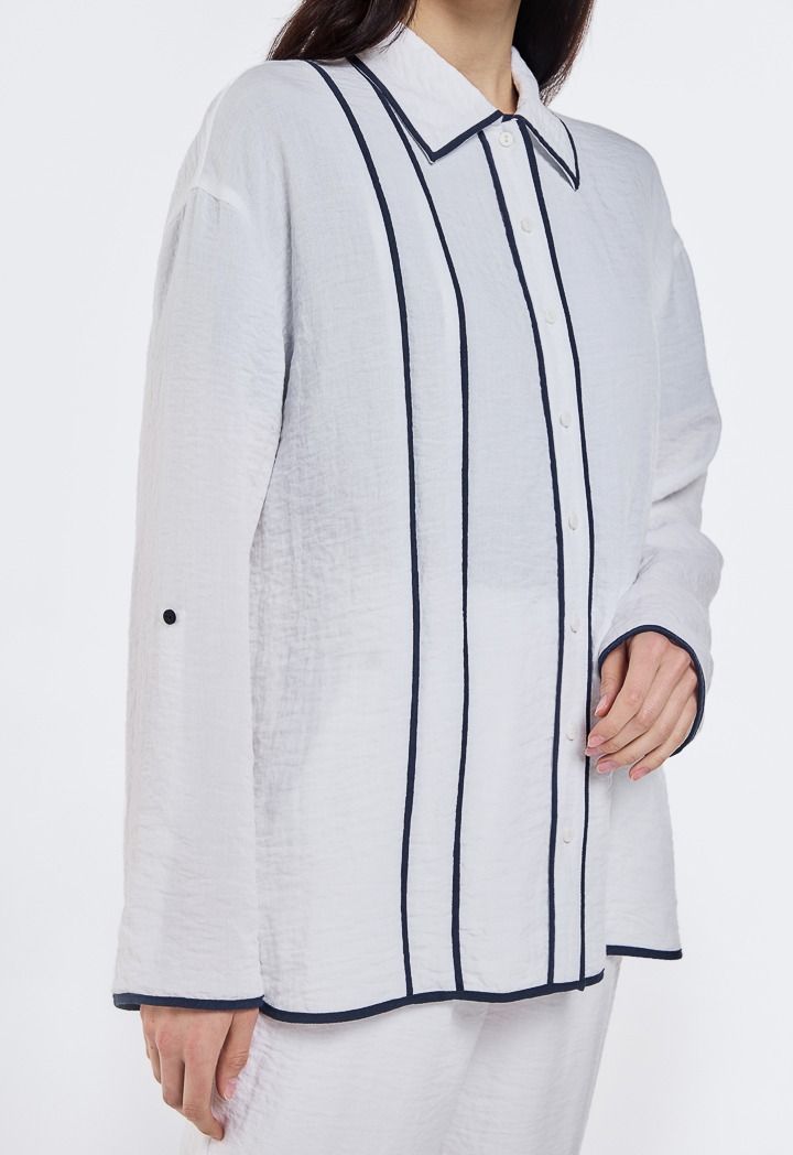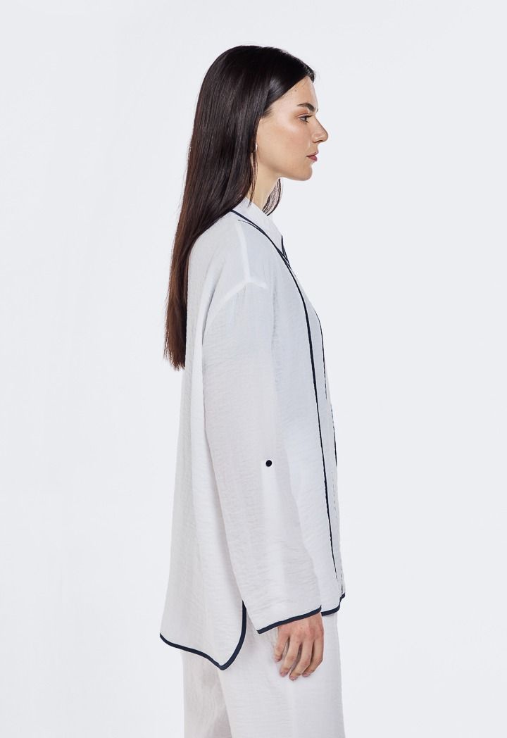 Design: Contrast Piping Details, Crinkled, High Low, Drop Shoulder