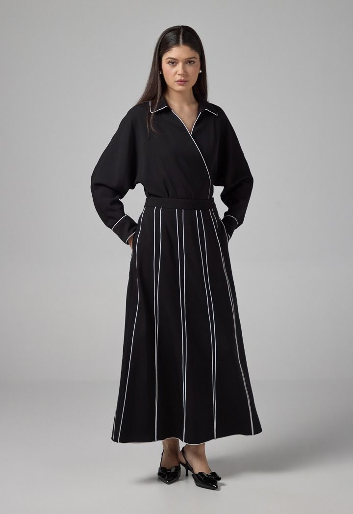 Design: Contrast, Plated, Flared, Pockets, Elastic Waistband