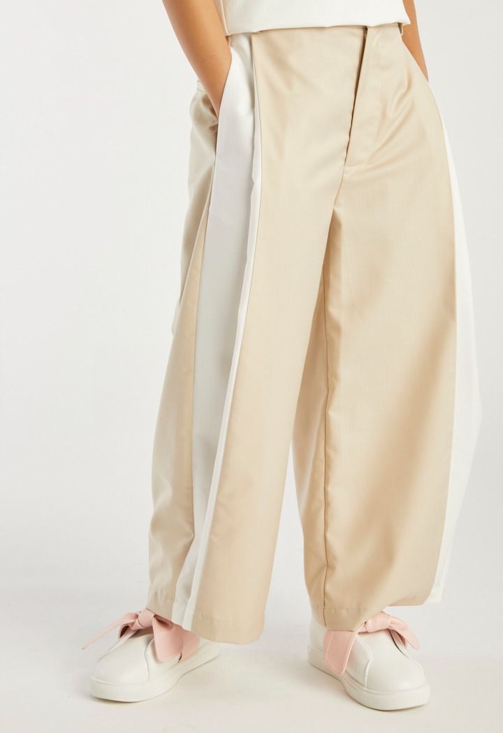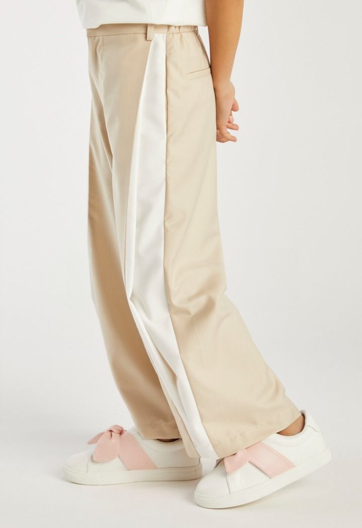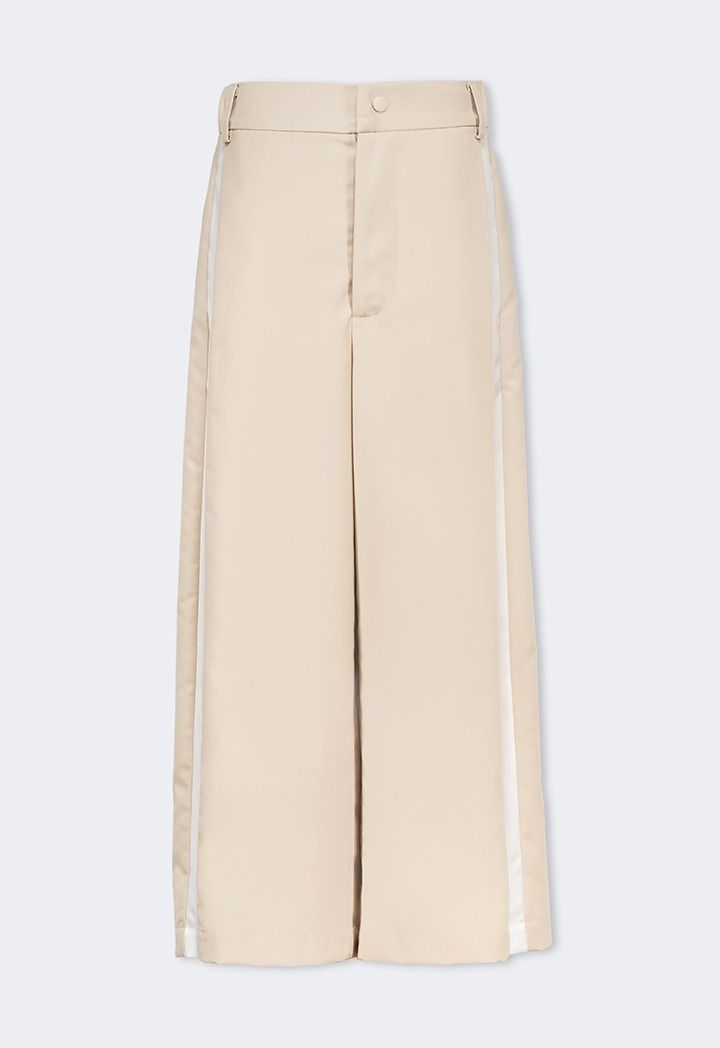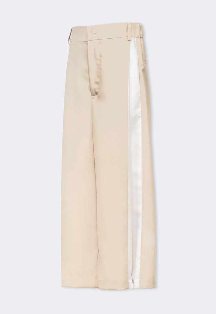 A pair of contrast trousers that features a aide pleat with buttoned hems.