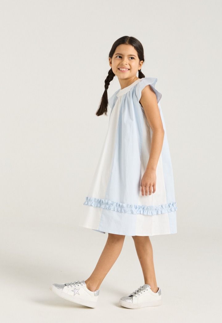 A stylish two-tone children's dress that adds a touch of charm and elegance
